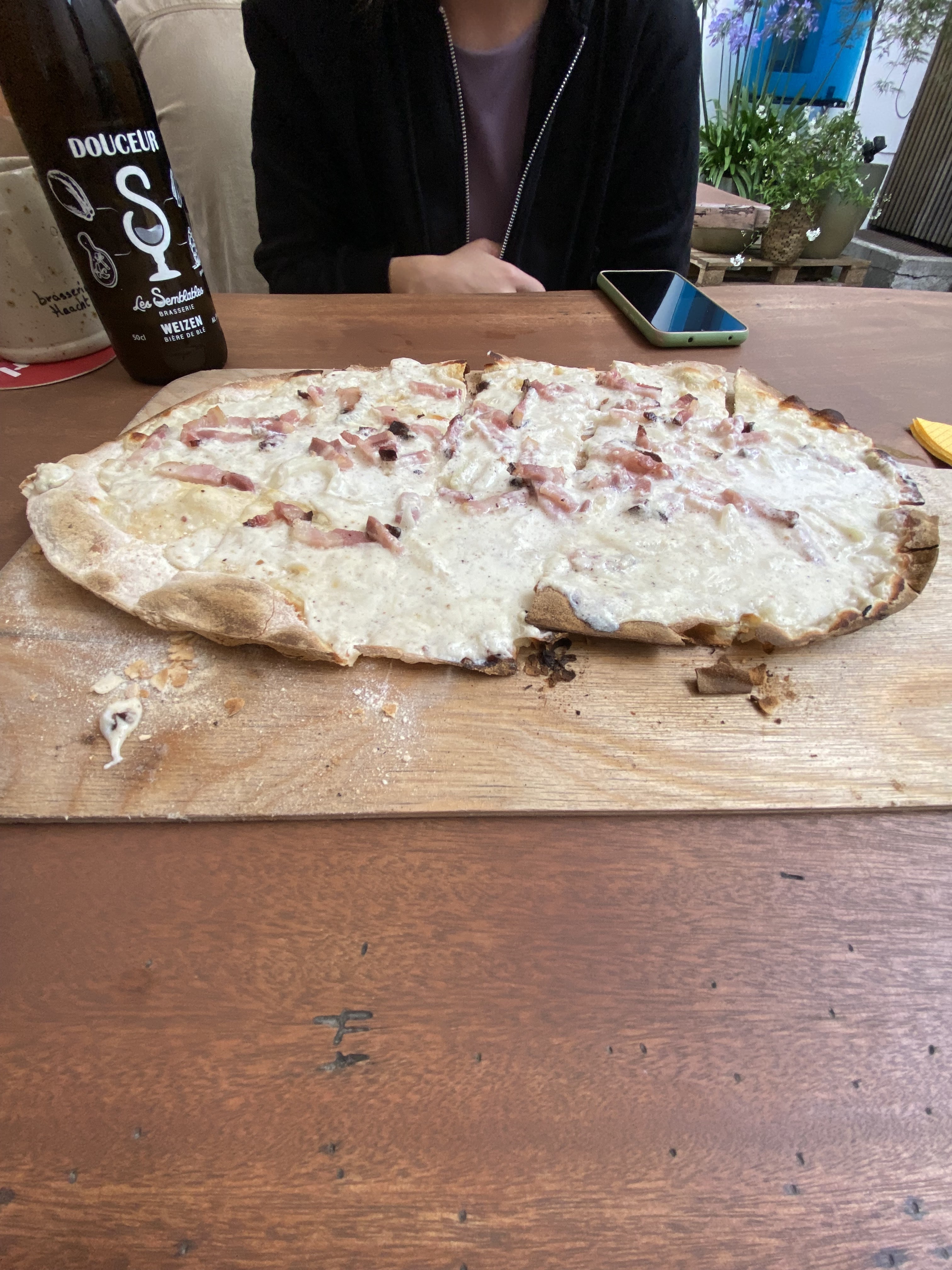 Les flammekueches étaient vraiment délicieuses ! J'ai adoré la comté et noix 🤩 les bières sont bonnes, les serveurs très cool et arrangeant pour la petite table en terrasse au dernier moment... rien à dire c'était très bien !