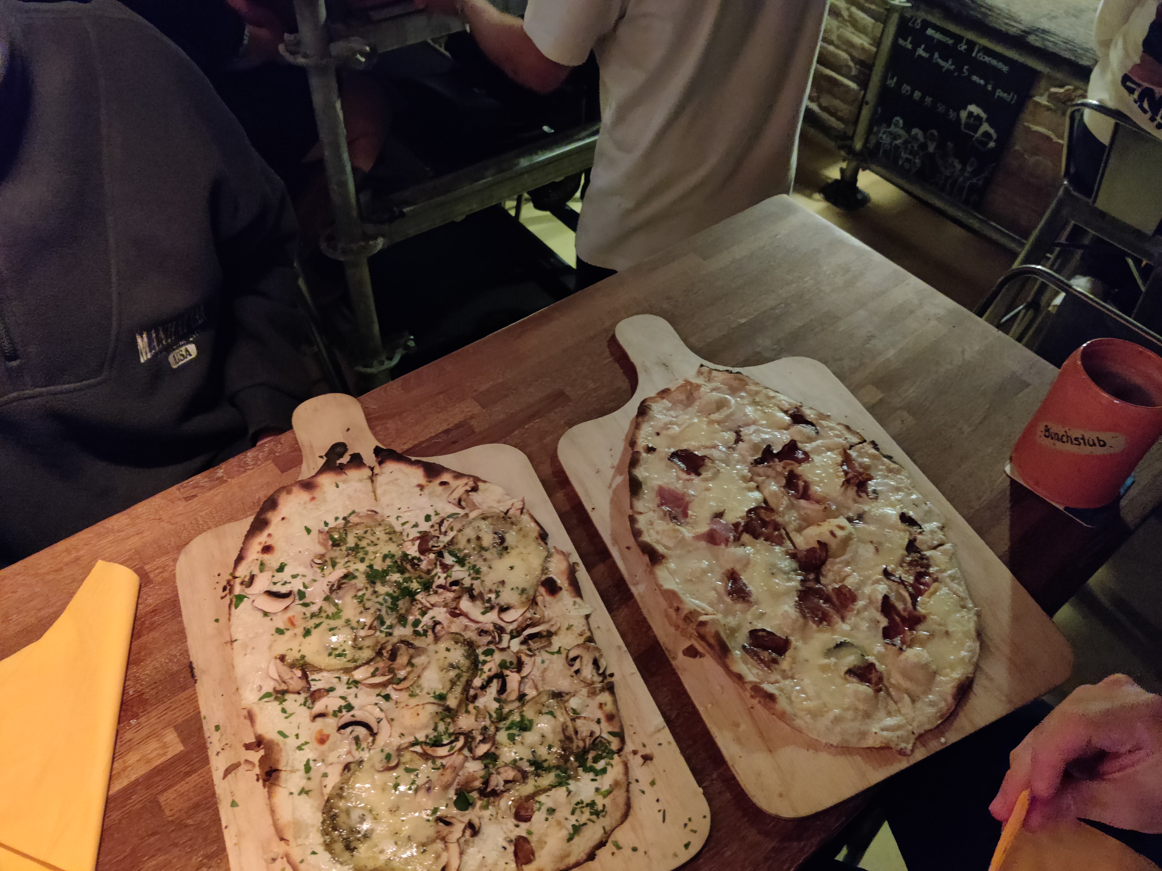 Première soirée et quelle soirée ! Très bonne tarte flambée. Une serveuse au taquet et adorable ! Quelle joie de vivre !