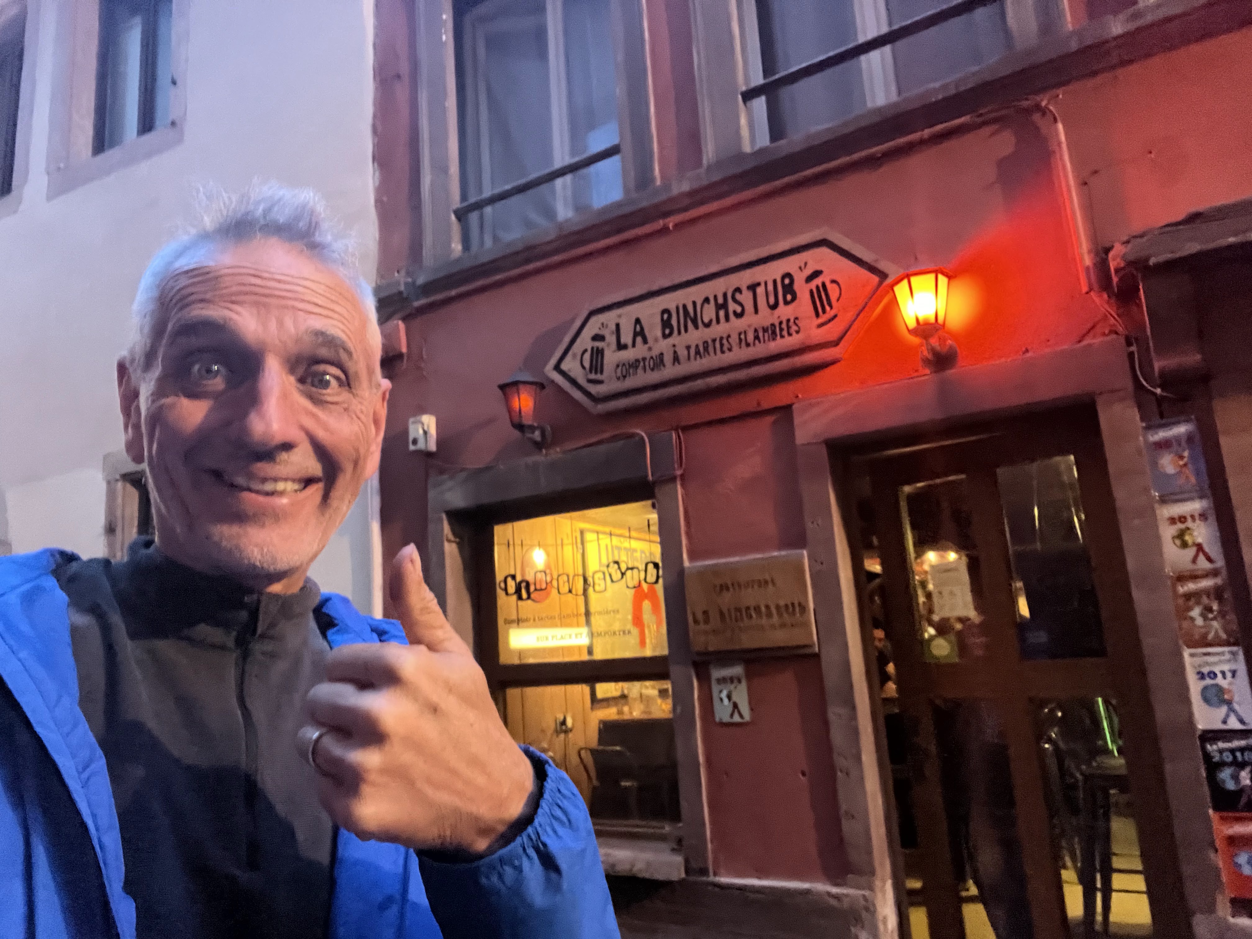 Des tartes flambées délicieuses Des mollards beaucoup moins Veillez à garder vos chaussures à vos pieds… prudence. (PS : attention, les chiens défèquent régulièrement dans la rue du Tonnelet Rouge)