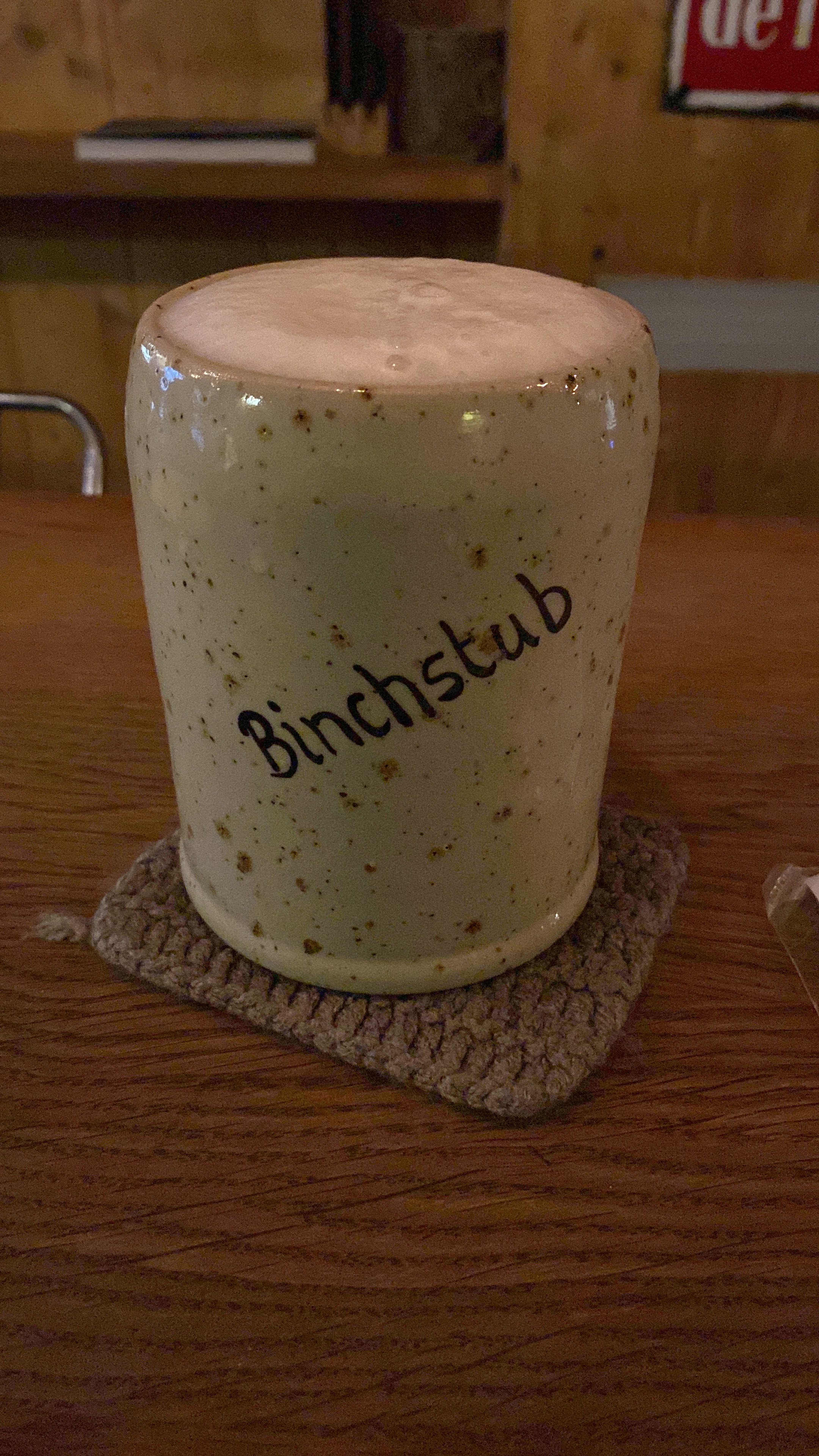 Nous avons mangé au Binchstub durant les marchés de Noël au mois de novembre. Les tartes flambées étaient délicieuses. Les produits utilisés au sein du restaurant sont locaux et superbement mis en valeur. Nous avons passé un superbe moment entre amies. Spéciale dédicace à l’équipe d’amis du resto présente ce 27 novembre 2021, on a bien rigolé !