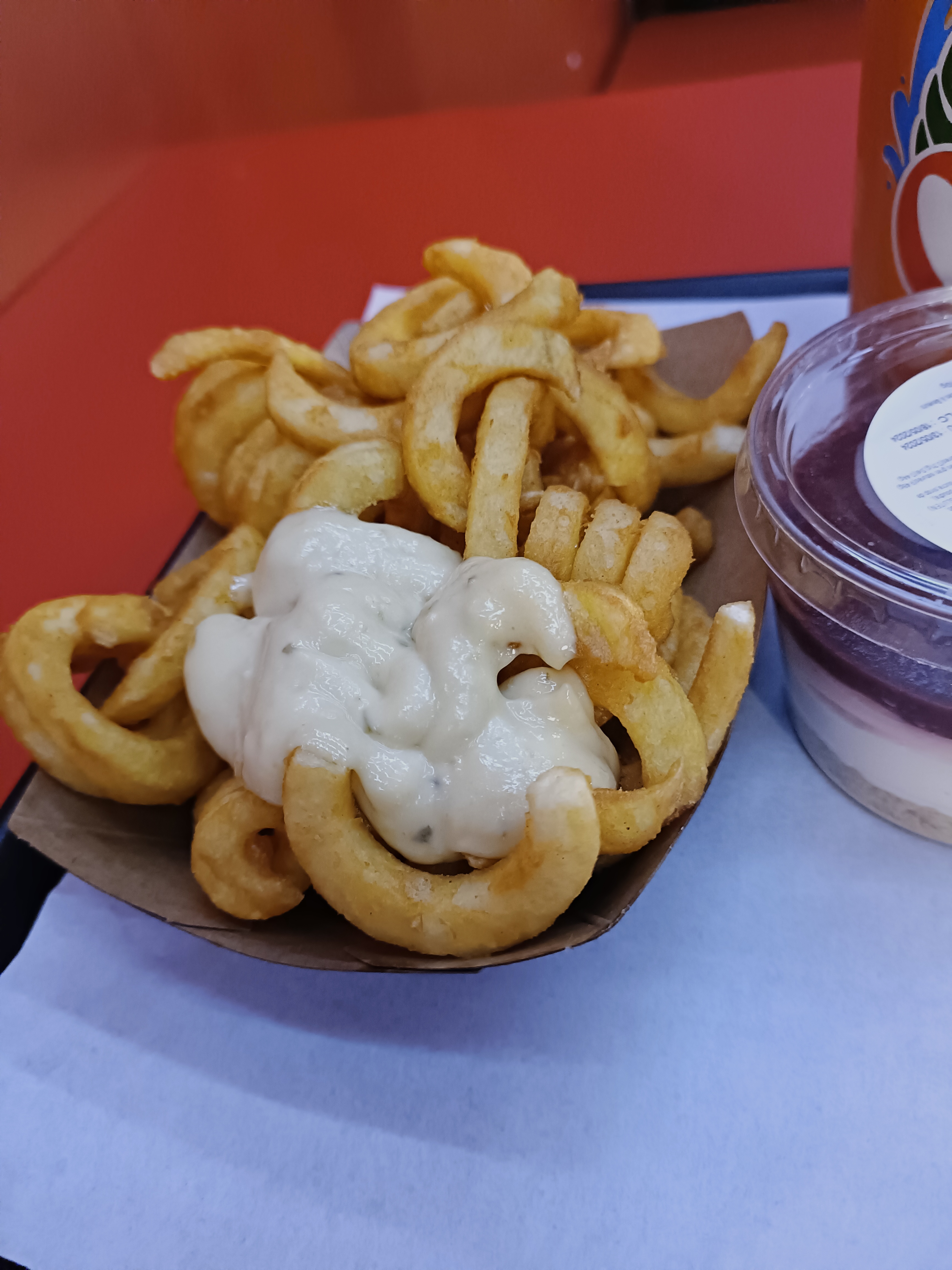 Je commande des frites aux cheddar 4€ alors j’ai pas compris la quantité de cheddar que j’ai reçu c’est censé etre un échantillon?C’est la première fois je vois ça en tant que grande adepte de frites cheddar.
