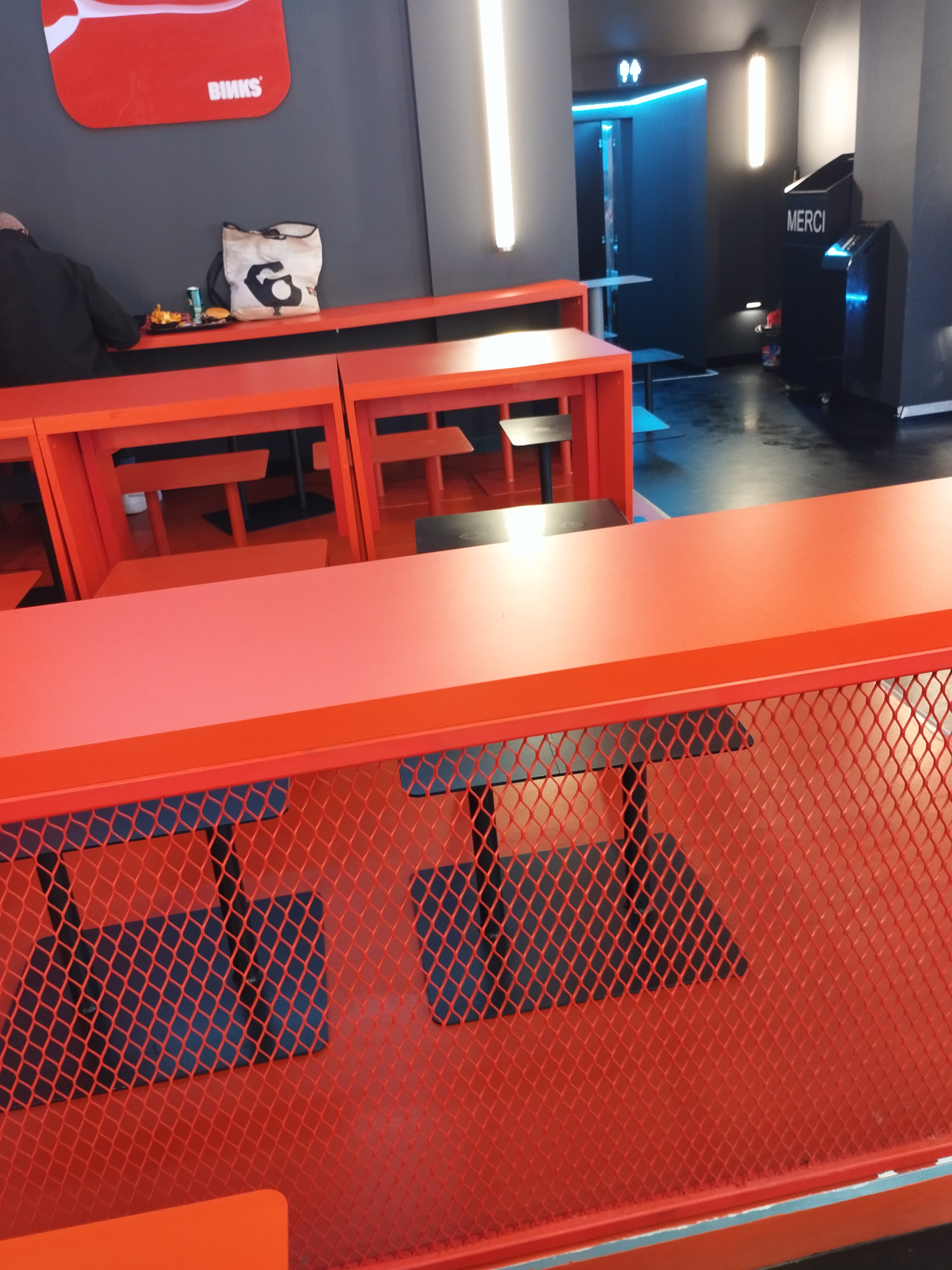 Le burger est passable. Pas de tomates, pas de cornichon, sauce quelconque, on sent même pas le fromage. Viande bonne assez bonne mais ne rattrape pas le reste. Par rapport au prix on est loin d'un five guys au même prix. Burger 3/10 pour moi. Parlons des frites curlys LIDL. C'est une catastrophe, ultra industriel, j'ai pris complément cheddar, eh bien ce n'est pas de la cheddar, mais une sauce farineuse au goût de diarrhée aussi dégueulasse que la sauce fromagère des tacos très bas de gamme, le temps que je finisse mon burger, les frites curly lidl déjà pas terrible étaient détrempée de cette horrible sauce. Je suis très déçu. Mettez des frites normales maison à ce prix et rajoutez des condiments. Quel gâchis. La déco est très moche aussi Ambiance cantine d'une prison dystopique.
