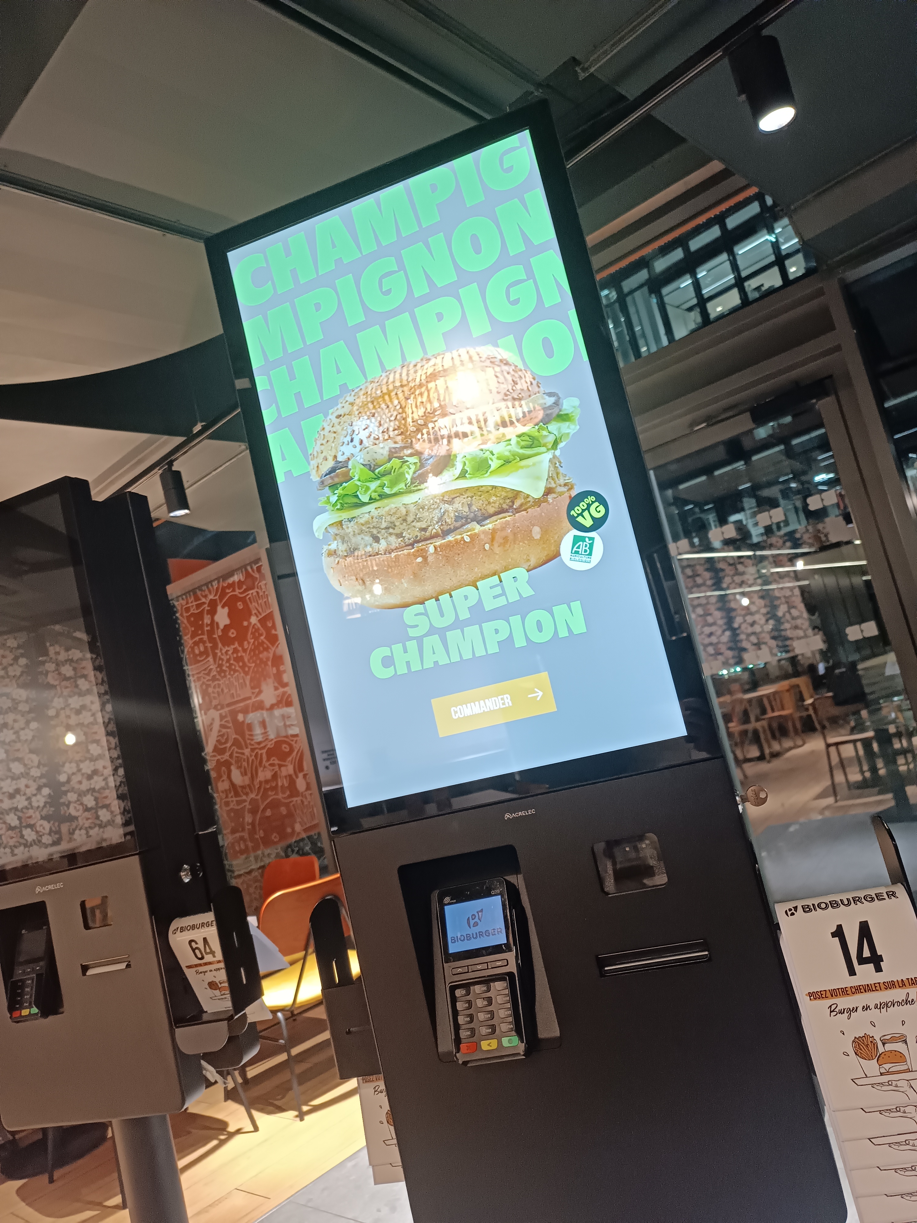 Établissement peu fréquenté lors de notre passage hier au soir a 19:20. Commande passée sur une borne. Choix nombreux avec la promesse du bio. Nous avons opté pour le menu ORIGINAL qui nous a bien plu. Si je dois trouver un bémol je parlerais simplement du côté très très gras des frites qui n en demeurent pas moins bonnes. Prix élevés. Personnels très avenants.