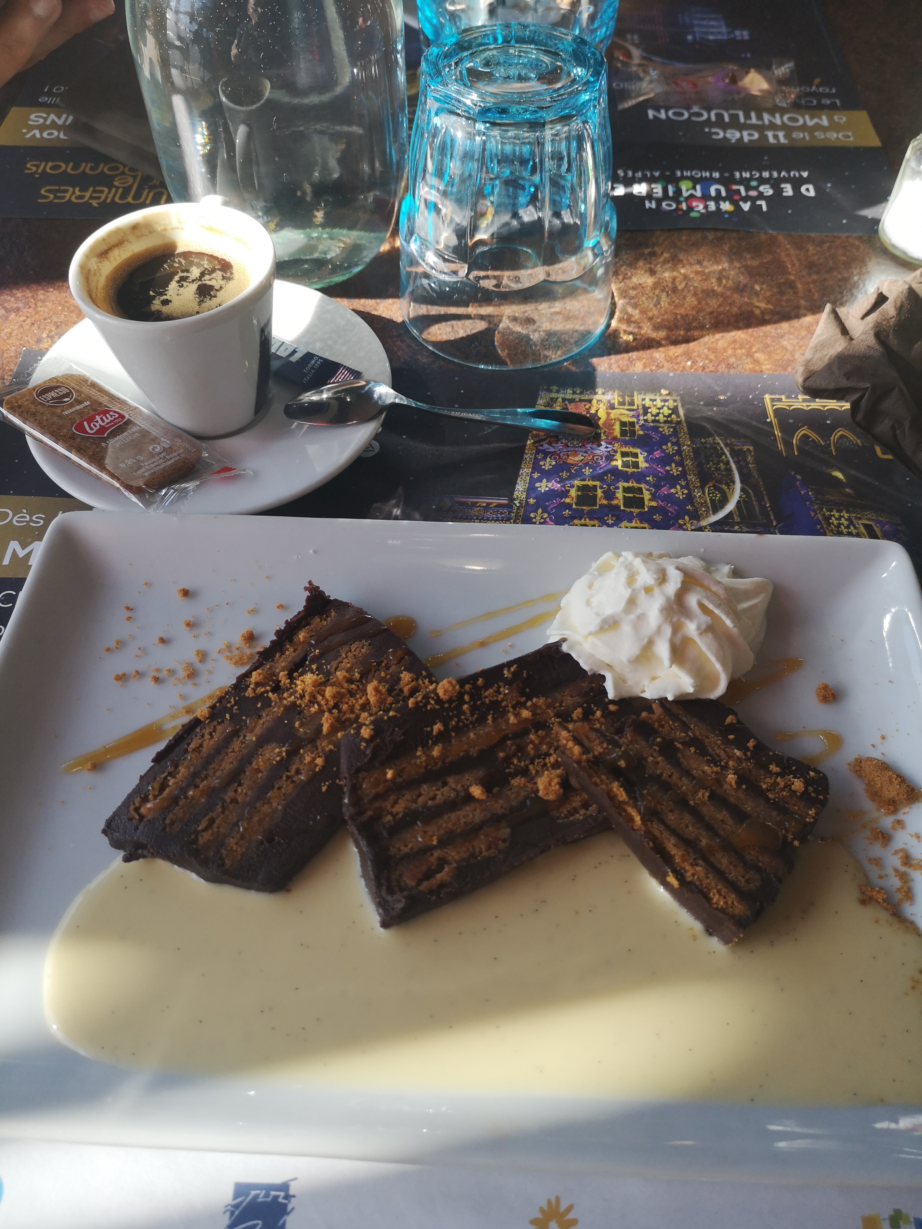 Bien Carte sympathique et variée avec des spécialités revisitées en mode local (la Chamberatoise ) En terrasse on en oublie même la proximité du parking Pas nécessaire d aller faire vos courses pour y faire une halte Je vous le dis bien bien
