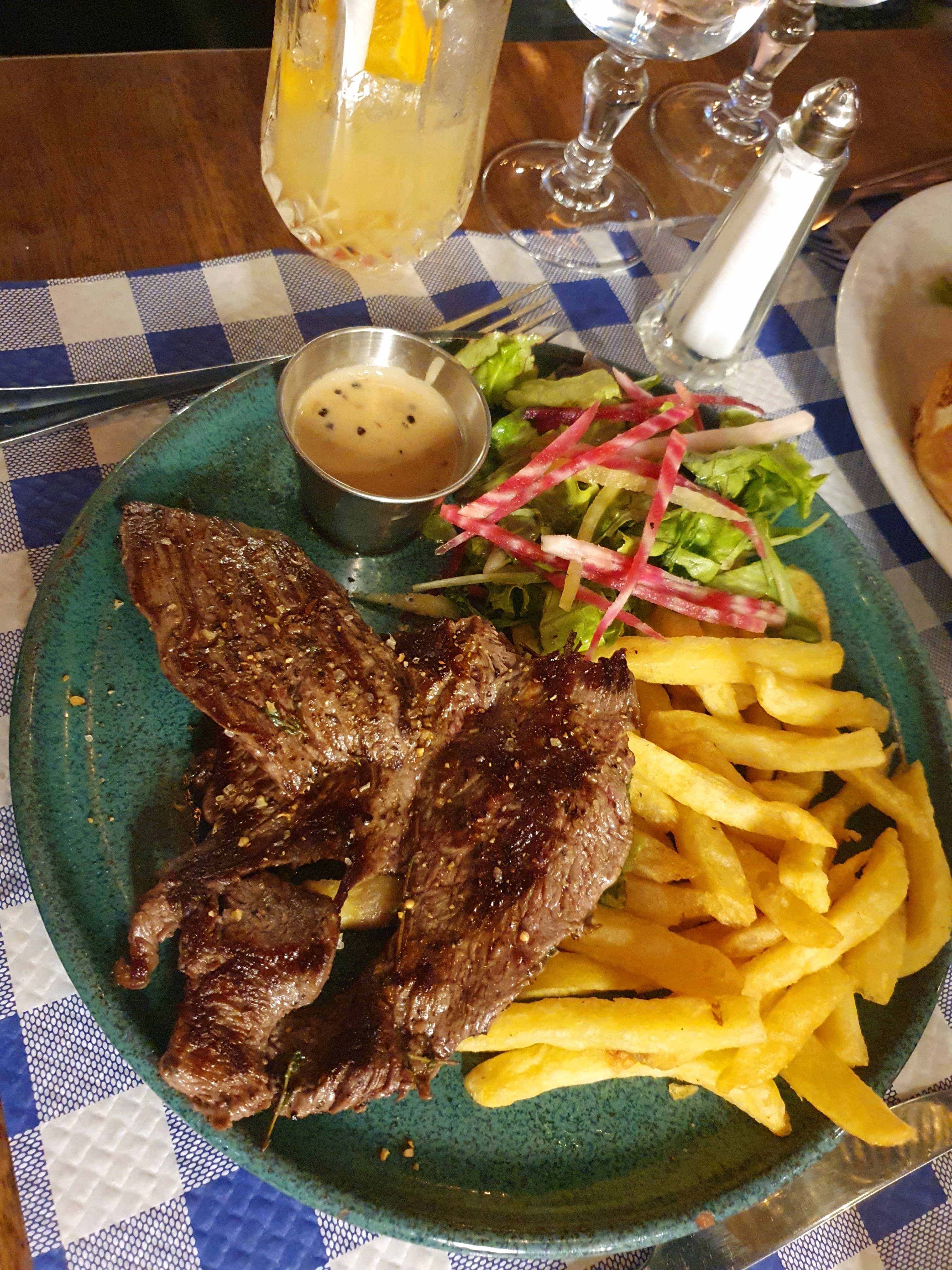 Personnel accueillant, le cadre est sympathique. Cependant si vous cherchez de la cuisine de grande qualité passez votre chemin, le restaurant n’est pas mauvais mais pas excellent non plus, la viande est de qualité très moyenne et accompagnée de frites surgelées. Mon avis est donc mitigé, c’est un lieu agréable ou on se rend avant tout pour passer un bon moment et non pas pour la qualité de la cuisine.