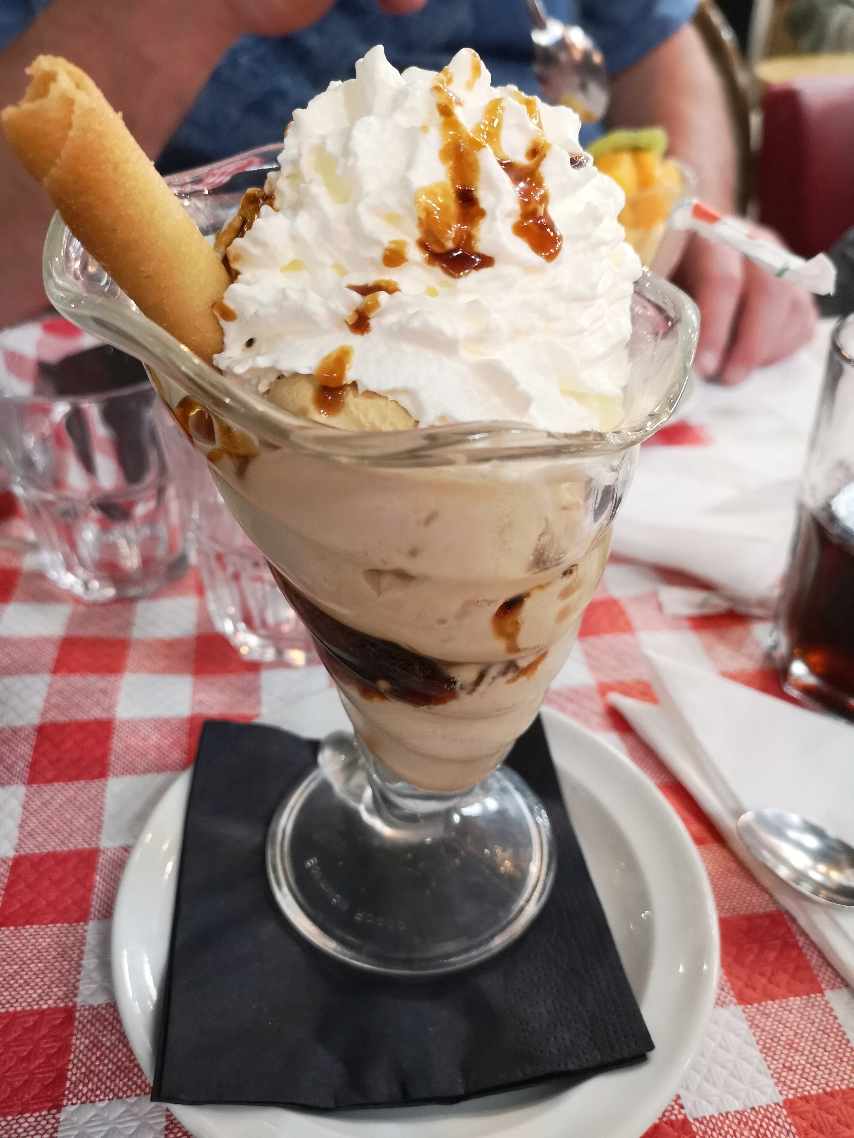 A notre arrivée, nous avons constaté qu'un membre du personnel courait partout. Il partait avec un bac vide à l'extérieur du restaurant et revenait avec un bac plein dans lequel se trouvaient des plats pour les clients. J'ai souhaité commander une glace et après 20 bonnes minutes d'attente, elle est arrivée elle aussi de dehors, d'un endroit à l'extérieur du restaurant, couverte de papier aluminium. Un petit passage près du bar, une bonne couche de chantilly et elle est arrivée sur la table, fondue... J'ai refusé cette glace qui venait de je ne sais où. Jamais vu ça !