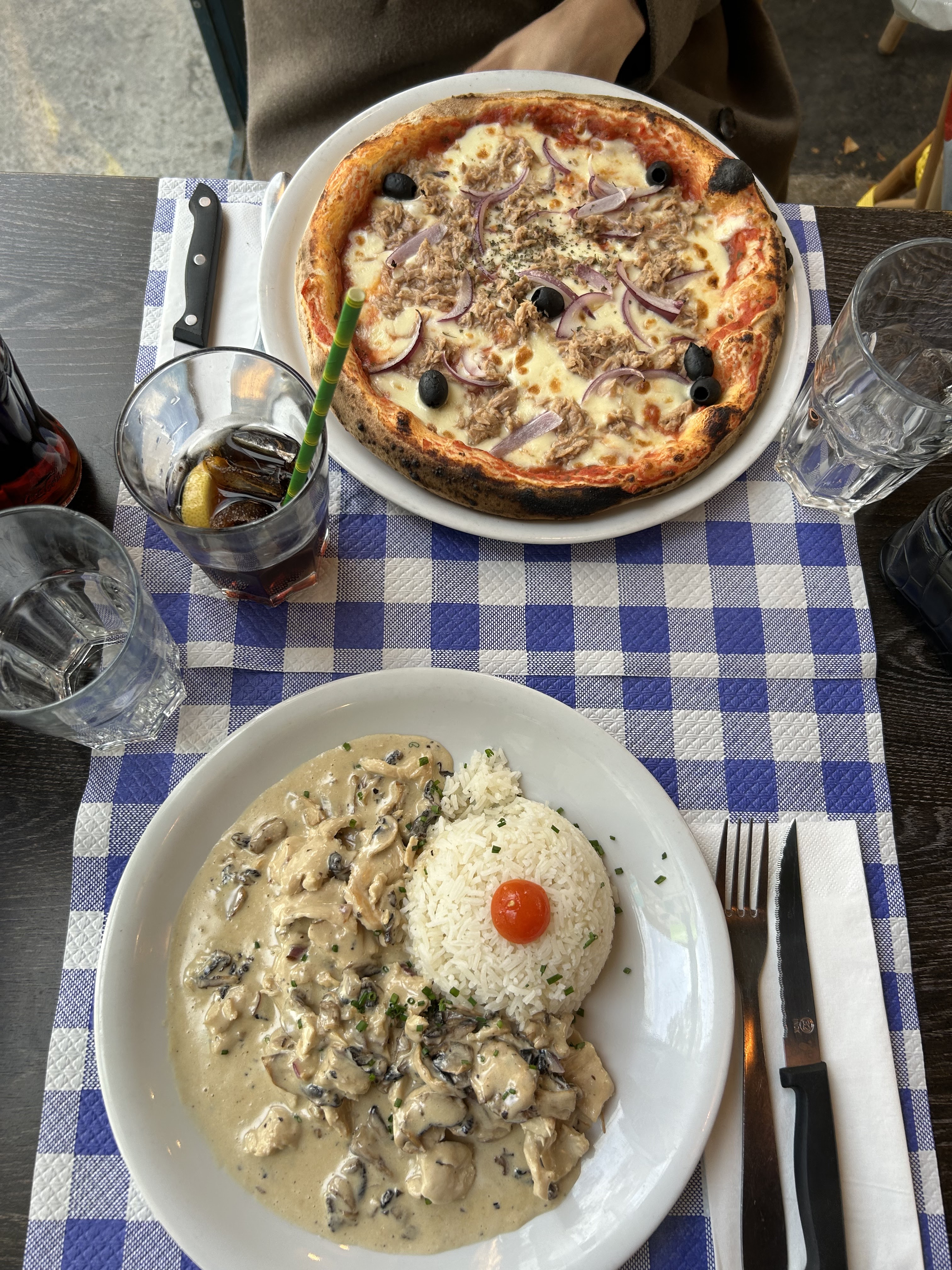 Nous étions de passage gare de l est et nous voulions manger une pizza. Ensemble très moyen. Ma fille a commandé une escalope milanaise à 18€ inmangeable car trop sèche et une menthe à l eau pour laquelle il a fallu négocier pour avoir de l eau... et on m a facturé un diabolo menthe à près de 5€. Pour les pizzas ça va mais les prix sont élevés. Les tables sont très proches les unes des autres et ne respectent pas le mètre de rigueur.