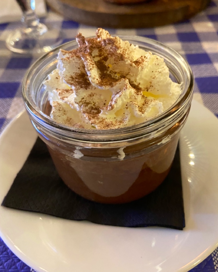 Menu du jour pris ce jour. Pas d’eau servie ou proposée. Rumsteck demandé saignant arrive bien cuit. Retour en cuisine, heureusement le suivant est saignant. Mousse au chocolat avec du blanc d’œuf liquide au fond. Il y a un problème de cuisinier…