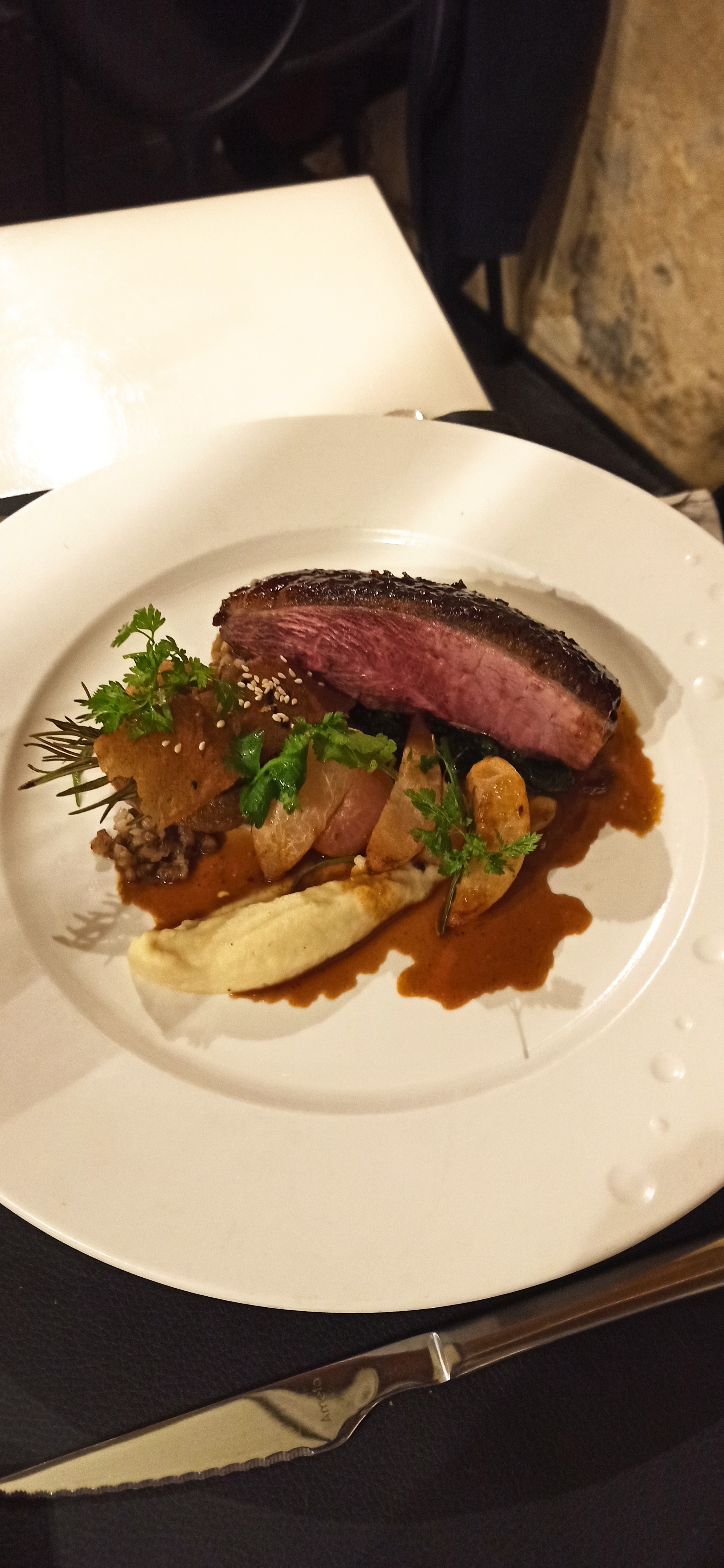 Un restaurant incroyable! Des serveuses agréables ,qui connaissent ce qu'elles servent et avec de bon conseils. L'accompagnement de beurre nous fait découvrir pleins de perspectives de dégustation. L'agneau était succulent. Et le Paris-Brest revisité à la pistache extraordinaire ! Enfin bref je recommande vivement ce restaurant intra-muros.
