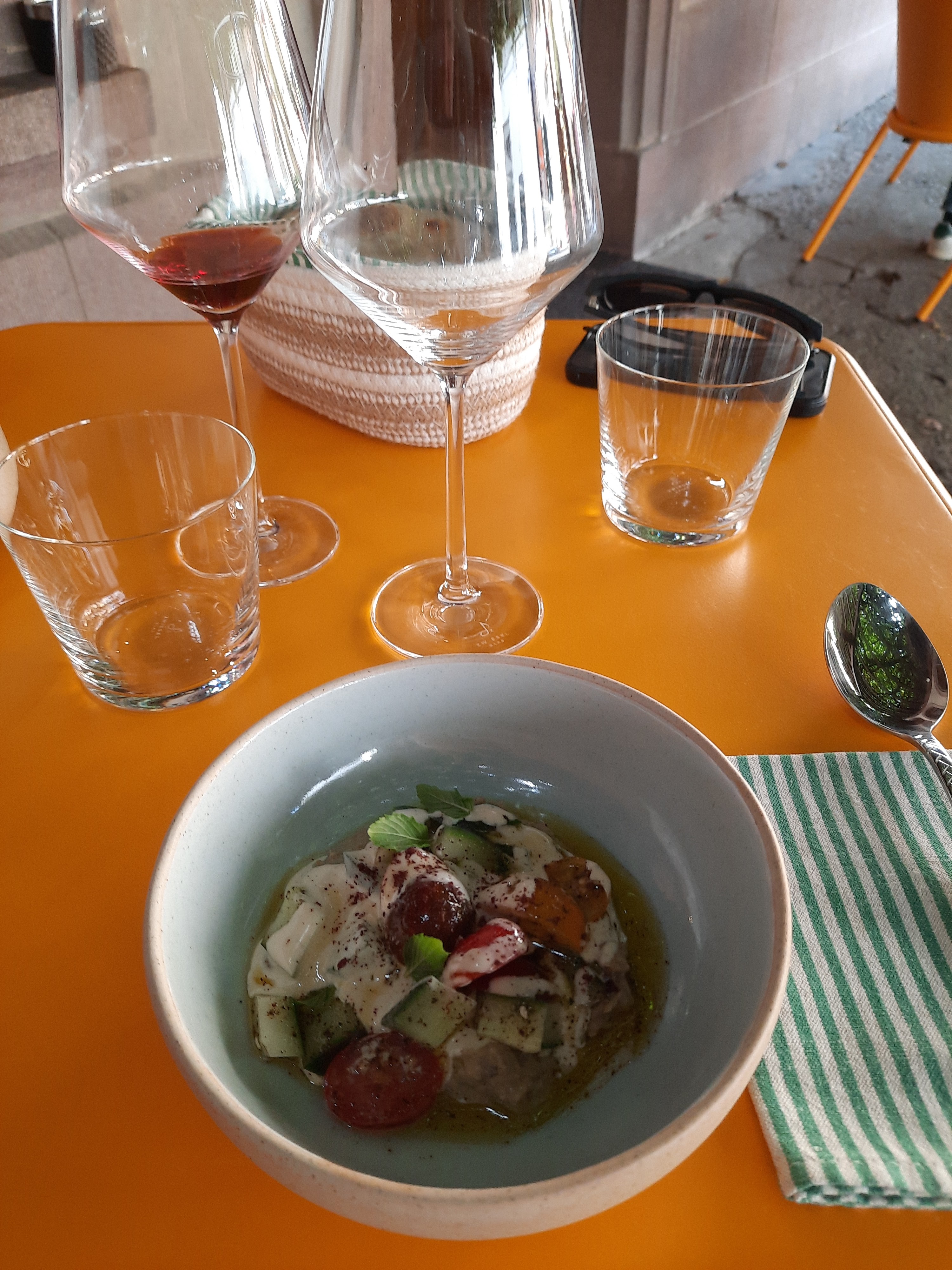 Nous nous sommes régalés de belles couleurs et des saveurs dans nos plats servis par Tariq le chef et Justine très souriante à nos petits soins nous recommandons mon conjoint et moi même 😉