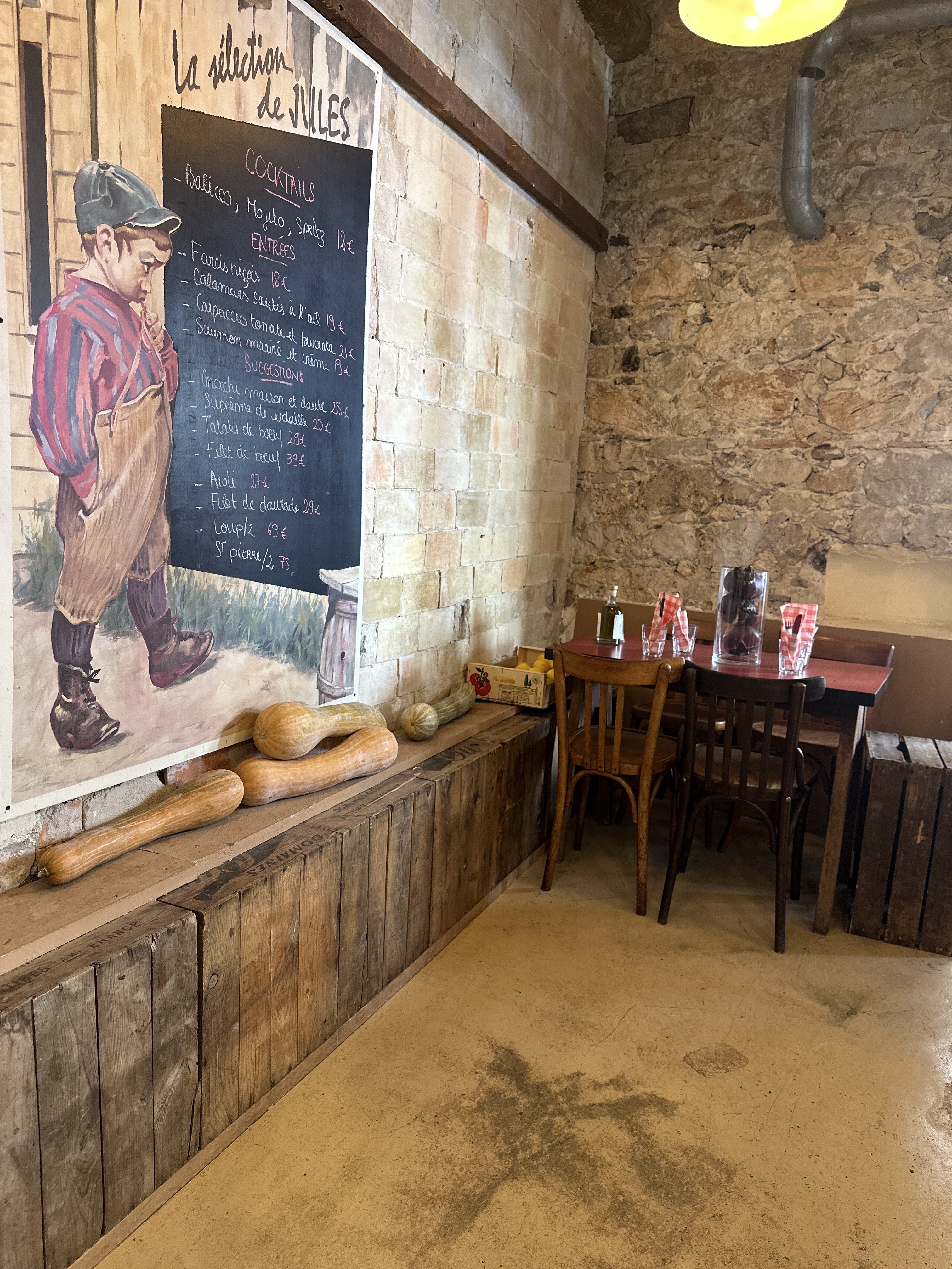 Une des adresses reconnues d’Antibes mais qui sait parfaitement conserver un accueil et un service très efficace et souriant . Une décoration qui met en avant les produits locaux qu’on retrouve dans l’assiette ; bref chez Jules ils ont tout compris , bravo !