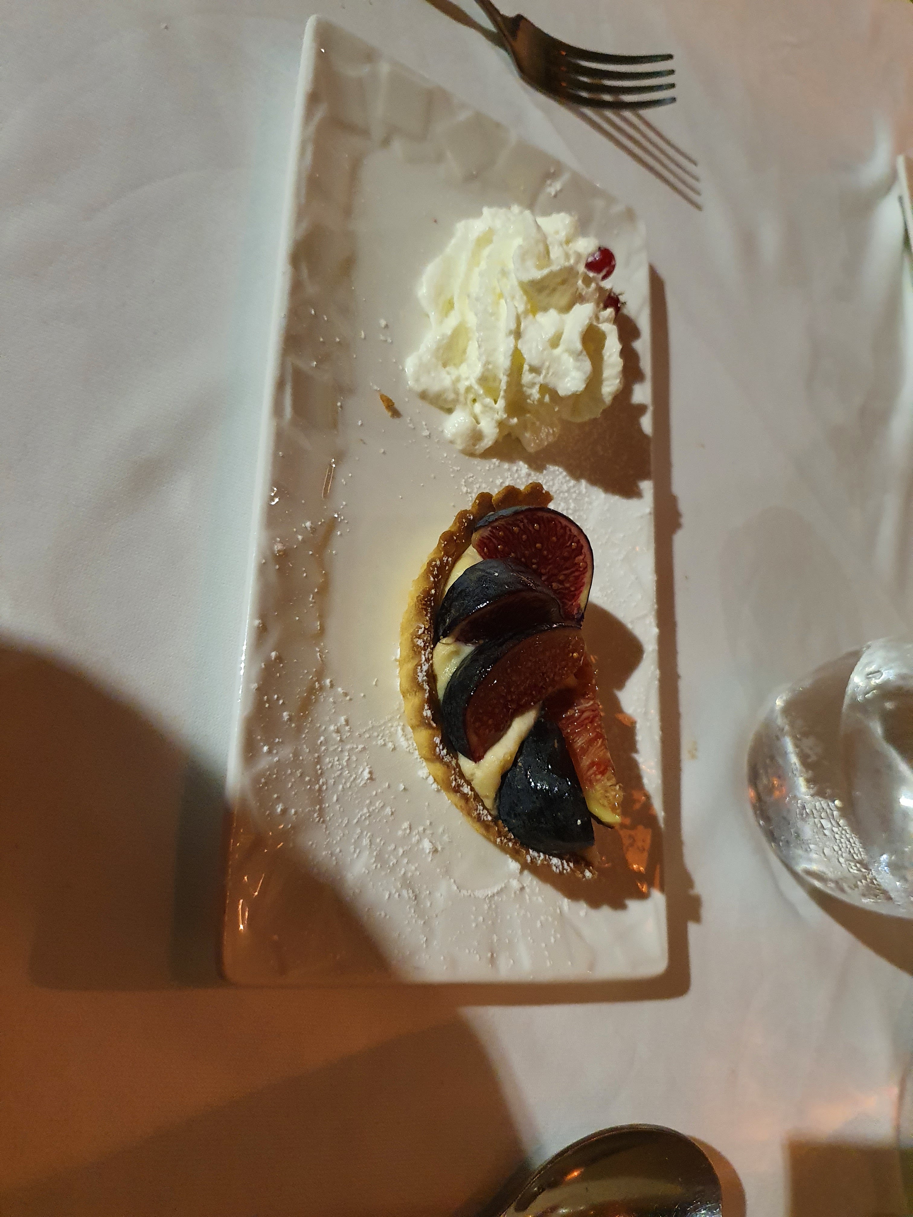 La nourriture était très bonne, recommandée par le personnel de notre hôtel. Nous avons demandé un vin doux, car nous ne sommes pas des buveurs réguliers de vin. Il s'est avéré que c'était le meilleur vin que j'ai jamais bu. Assis dehors par une nuit chaude. Il est arrivé et il nous a dit qu'ils n'avaient pas de disponibilité, il n'avait pas vérifié, uniquement parce que nous avions commencé à demander une réservation pour un autre soir, il a ensuite regardé et nous étions assis en train de manger 15 minutes plus tard.