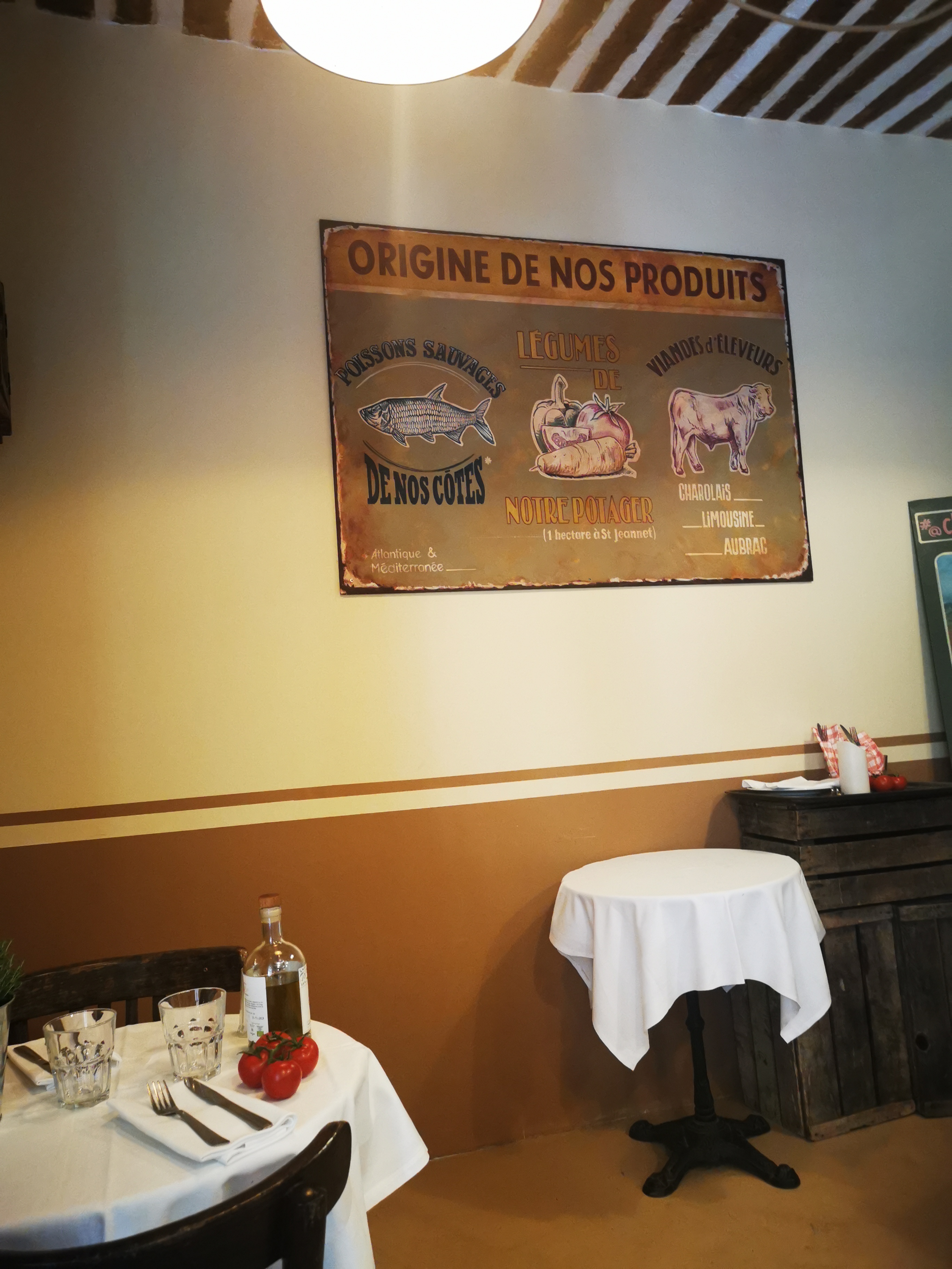 La décoration est juste trop mignonne , on s'imagine dans une vieille épicerie de village où dans un bistrot a l'ancienne , décor provençal et vintage . Un service accueillant ,charmant et polie. Une carte provençale pas très étoffée , mais le plat du jour est à un prix tout à fait raisonnable pour la région.