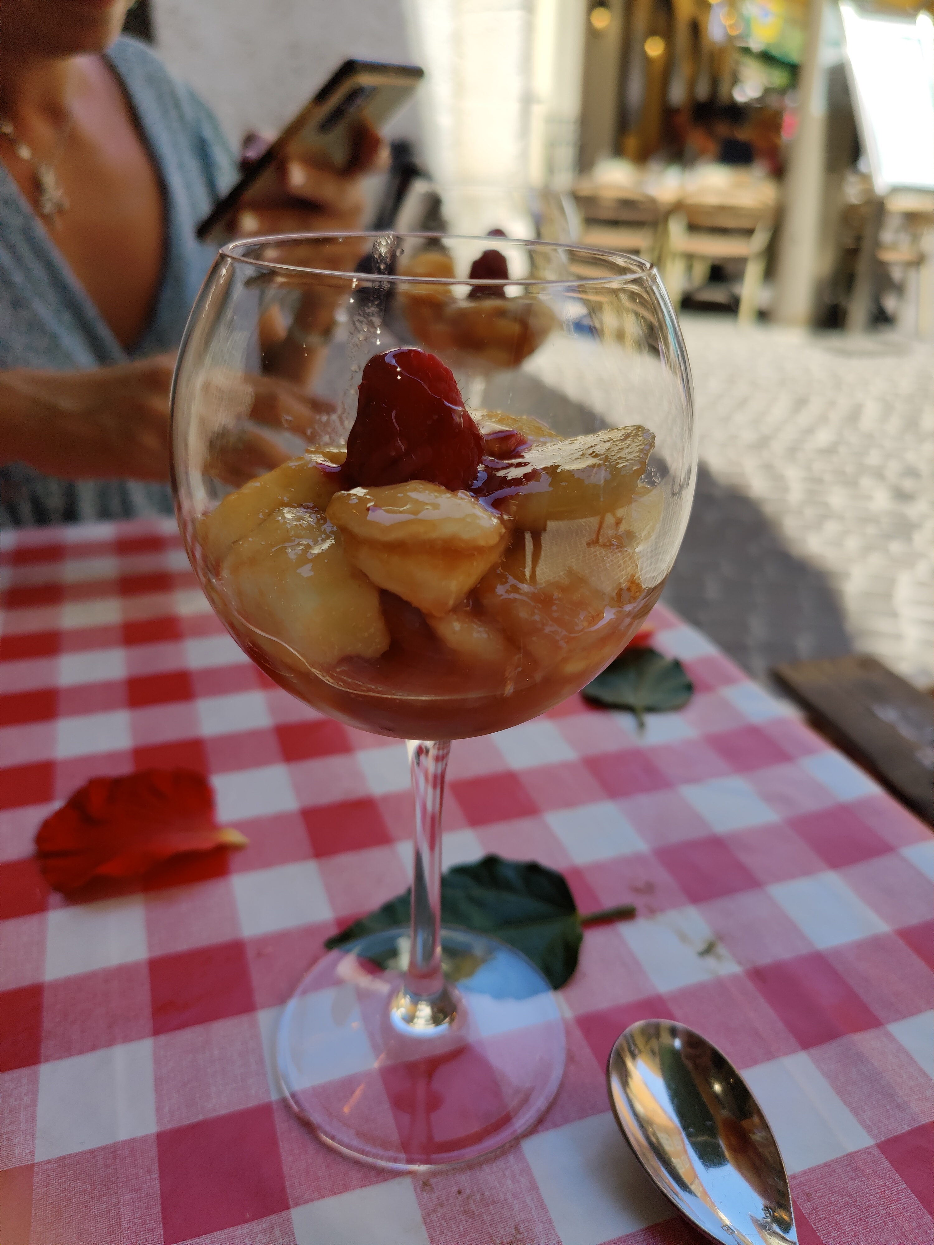 L’adresse est attirante de par la présentation très agréable des fruits et légumes frais. L’aspect rétro de la déco fait penser aux bistros d’antan. Le personnel est adorable. On s’attendrait à un piège à touristes, ce n’est pas le cas! La qualité est au rendez-vous et c’est une très bonne surprise. Bravo continuez.
