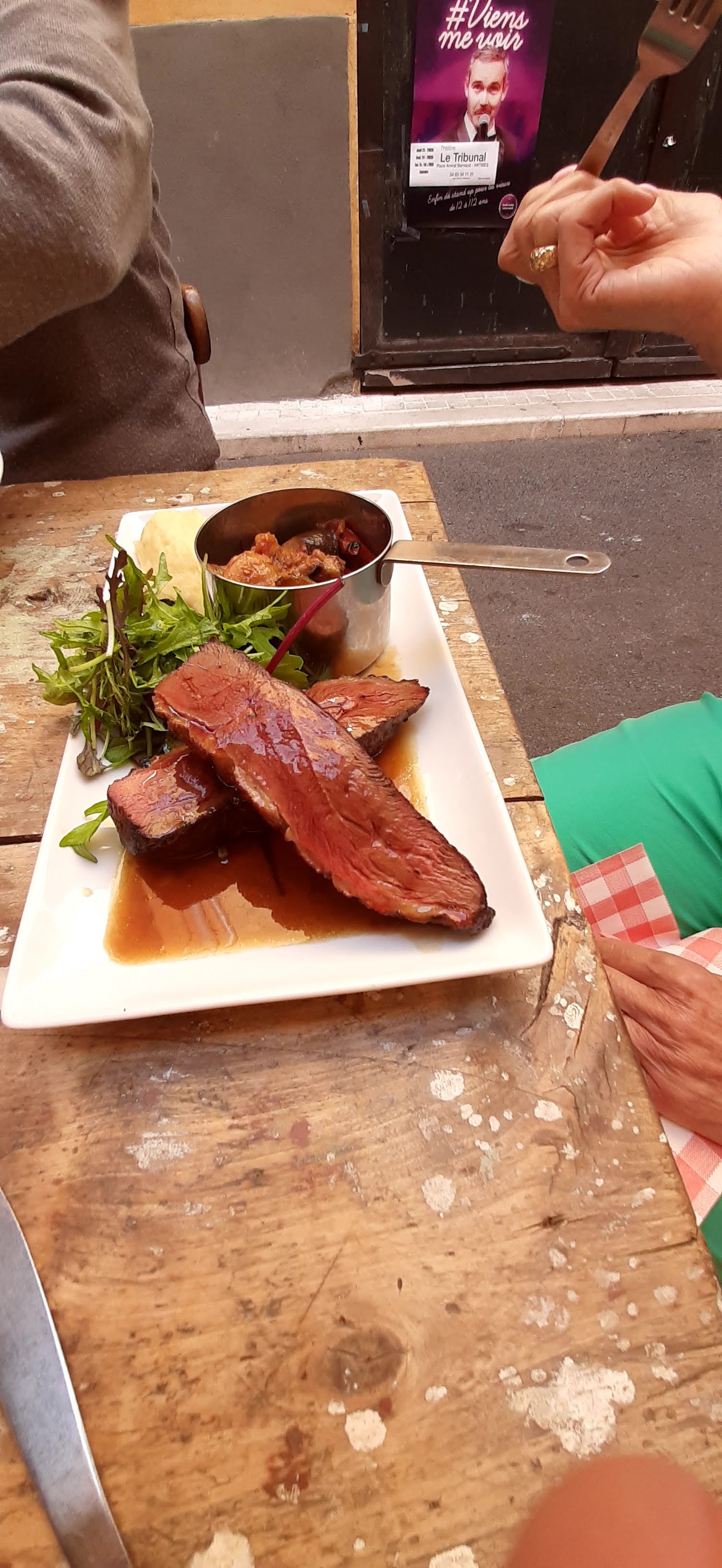 L'un des meilleurs repas que nous avons eu en France jusqu'à présent. Nous avons eu le filet de bœuf, le ragoût de bœuf aux gnocchis et le tiramisu. J'aurais aimé manger ici tous les soirs de notre voyage à Antibes, mais malheureusement, nous ne l'avons découvert que lors de notre dernière nuit en ville. Service excellent et sympathique (de la personne qui nous a assis et de notre serveur), atmosphère agréable et la nourriture est sortie rapidement.