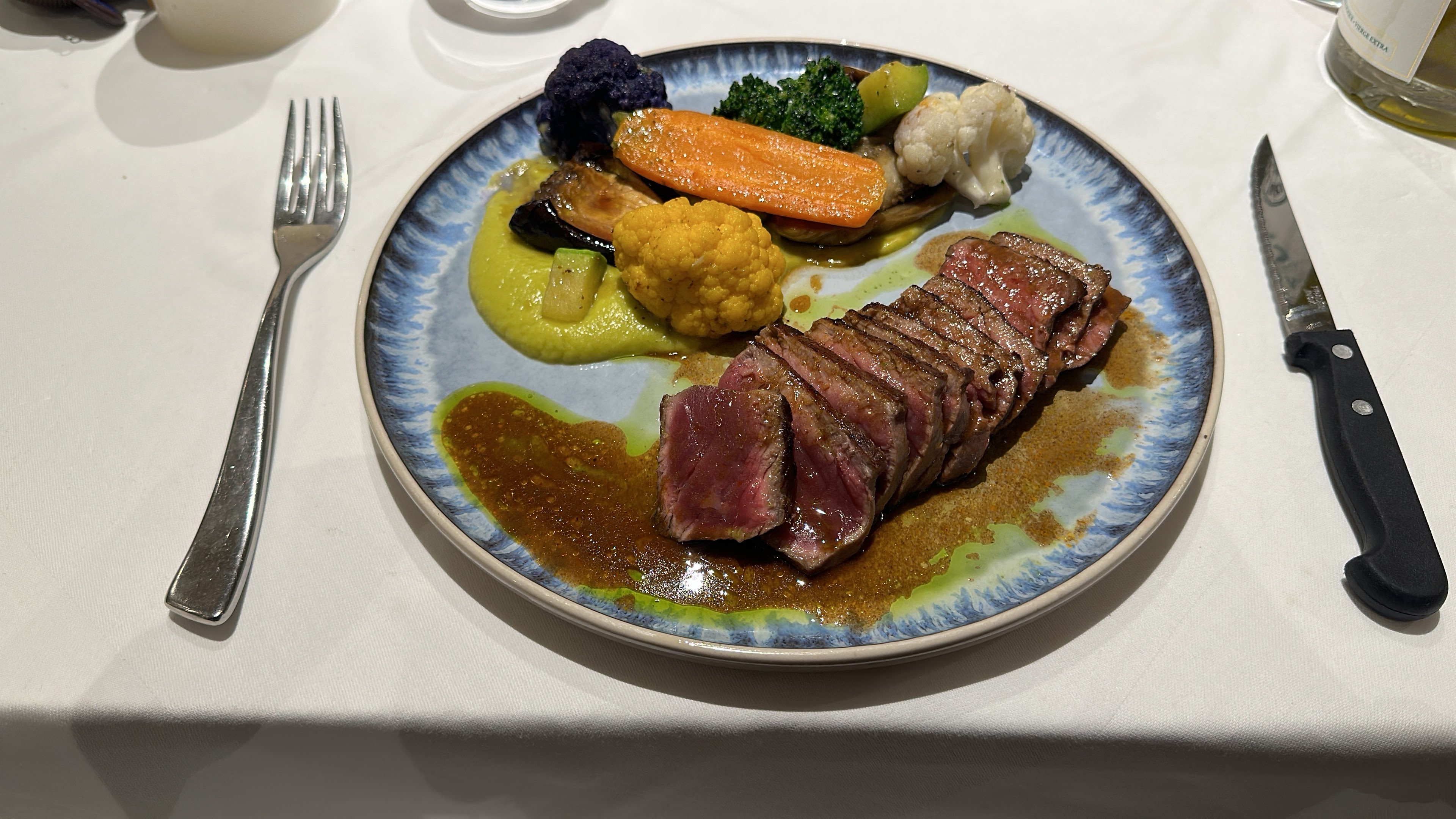 Commander un filet de bœuf saignant à l’arriver un filet à point pas de problème celui ci a été remplacé. Mais déçu qu’´ils nous fasses payer la garniture en supplément.j’ai demander un écrasé de pomme de terre et ratatouille celle-ci facturé 8euros sur un plat qui en coûte à lui seul déjà 39. Bref heureusement que sur les deux serveurs ,un le plus âgé sauve les meubles par son professionnalisme. Un peu déçu par cette deuxième expérience car les produits sont de qualités.