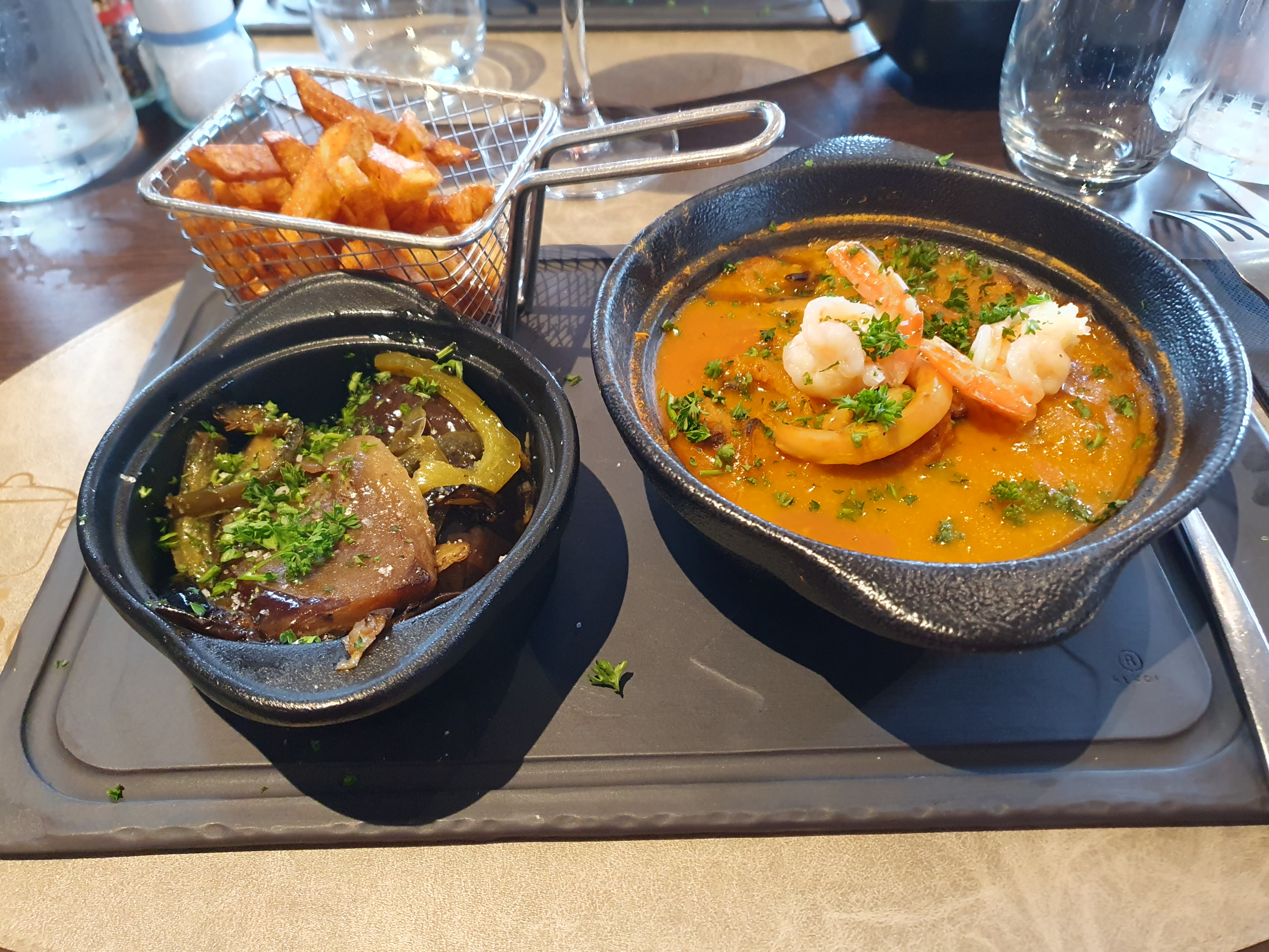 Très moyen, haricots verts sortis de l eau, sans beurre ni ail, ni rien. Frites pas top et peu copieuses. Accueil très moyen... le pire c est l emplacement près de l aire de jeux, un jeu super bruyant collé contre la paroi où on était installé... aie aie aie