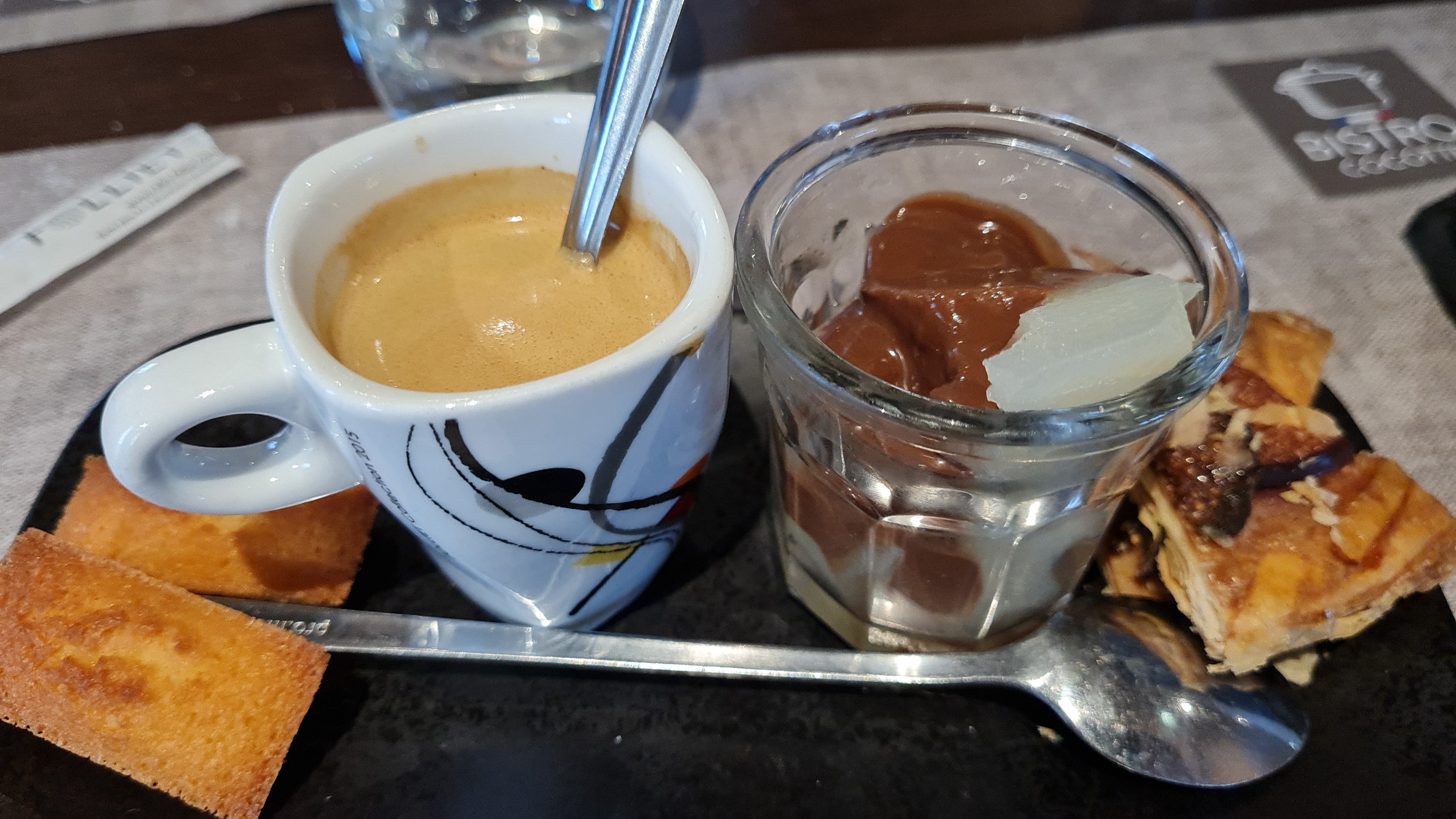 Service rapide et agréable, un fish and chips croustillant, des frites un peu trop cuites à notre goût. Financiers du café gourmand au top, les autres mignardises banales. Un bon rapport qualité/prix pour la pause du midi sur la route du retour.