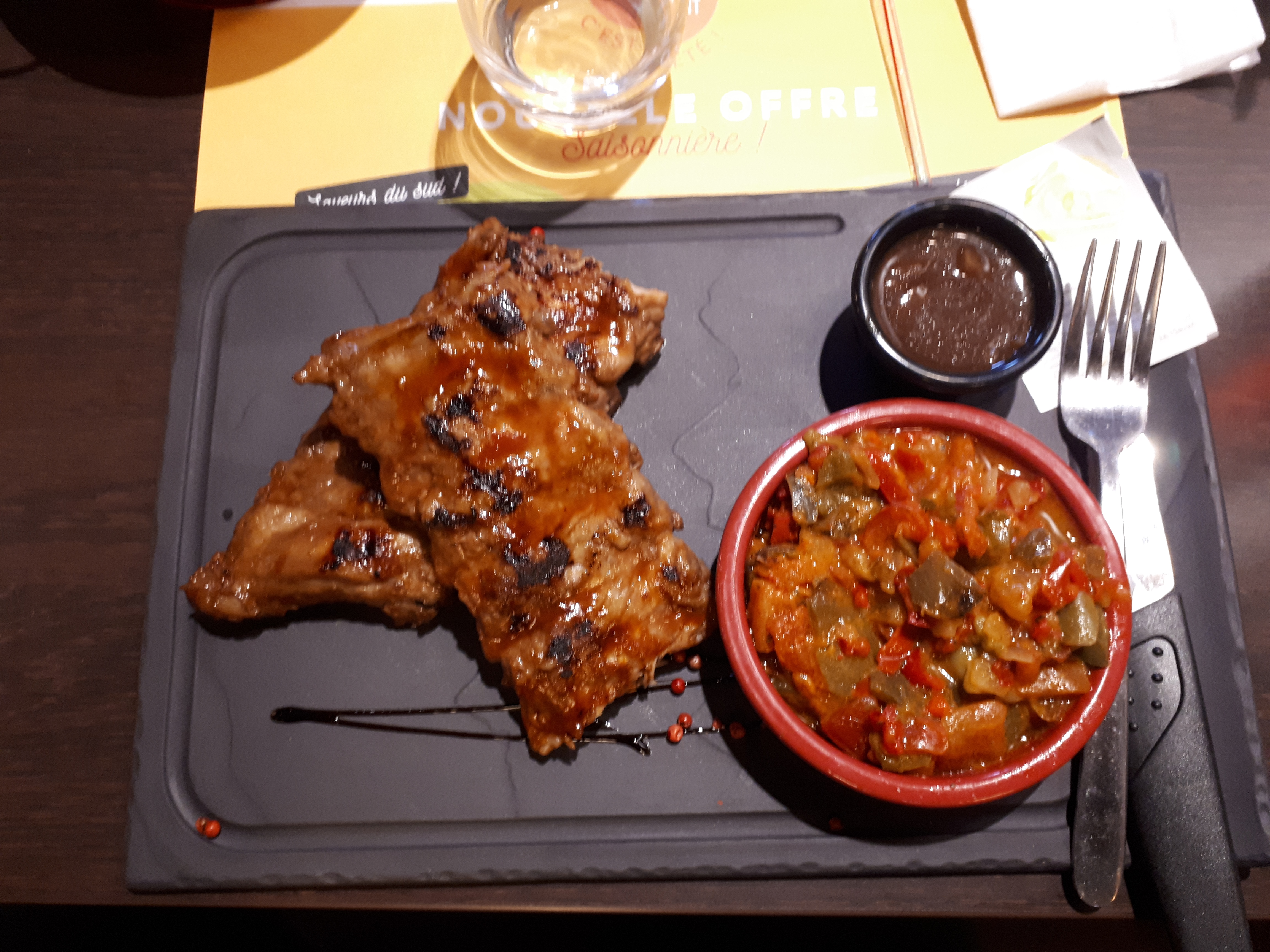 Petite pause roborative lors du trajet retour des vacances. Agréablement surpris par l'enseigne que je ne connaissais pas. Propre, déco très agréable, ambiance moderne et accueillante. Les menus sont sympas et les prix aussi. Cuisson du burger parfaite. Ribs pas gras et bon a s'en lécher les doigts. Frites croustillantes... Franchement par rapport aux autres chaînes de grill steakhouse, Ici la qualité est au rdv. Et grand plus le personnel est tout à fait attentionné avec les enfants. Bravo.