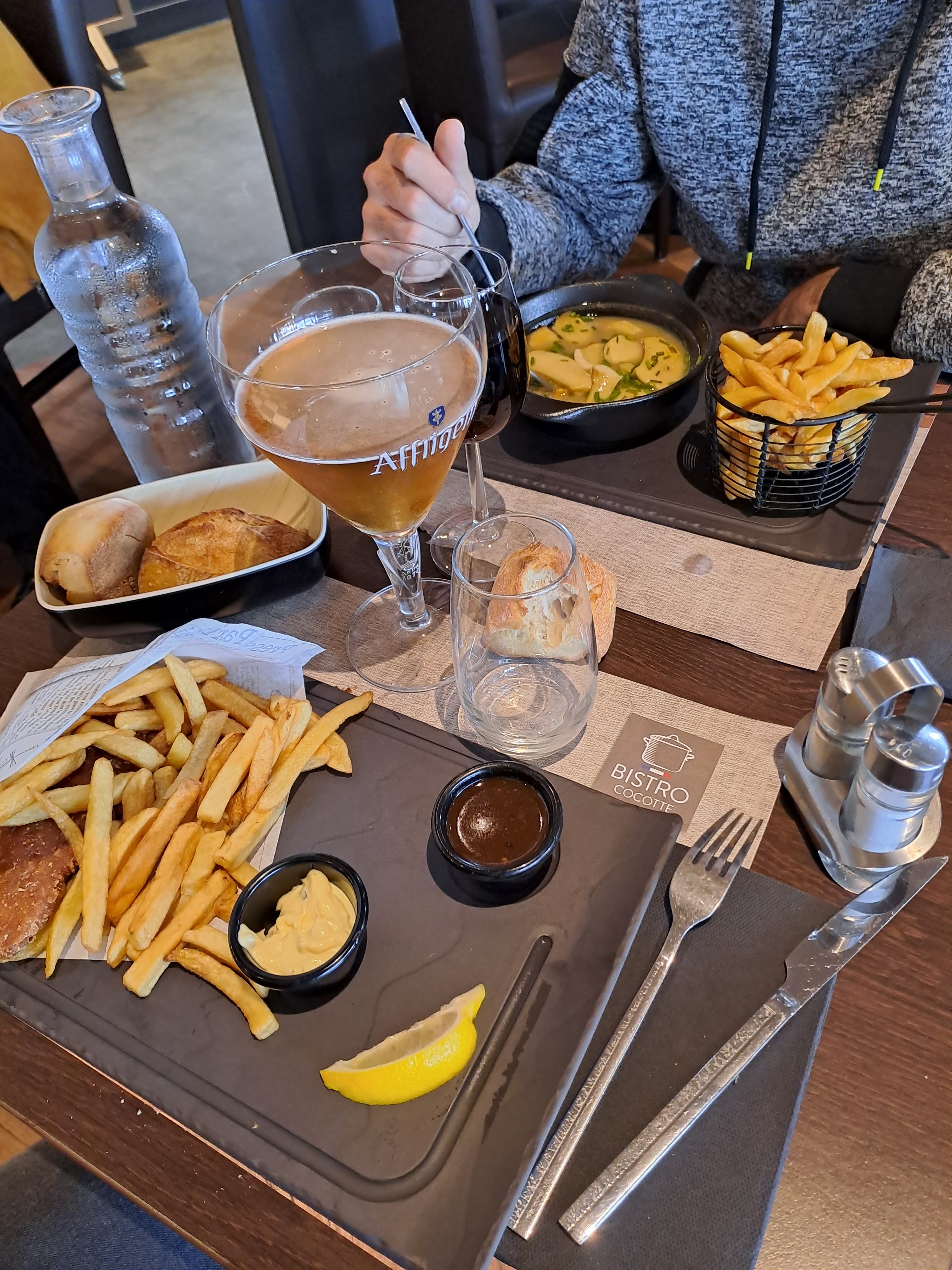 Accueil PAR-FAIT, une gentillesse au top de la part de l'équipe en salle. Deux chaises hautes pour les enfants, un service rapide, des petites attentions... C'était super ! Pour le repas nous avons bien mangé. Ce n'était pas du gastro, mais tout à fait à la hauteur des prix affichés sur la carte : le fish&chips était bien cuit, la salade césar était garnie et très bonne. Et les enfants avaient une belle assiette (même s'ils n'ont mangé que la moitié) avec un steak boucher et des aiguillettes de poulet croustillantes et très bonnes. Bref, nous étions de passage, mais nous retenons l'adresse pour la prochaine fois ! (et pour ce qui est de la salle, ambiance cosy, propre et agréable, ça compte !)