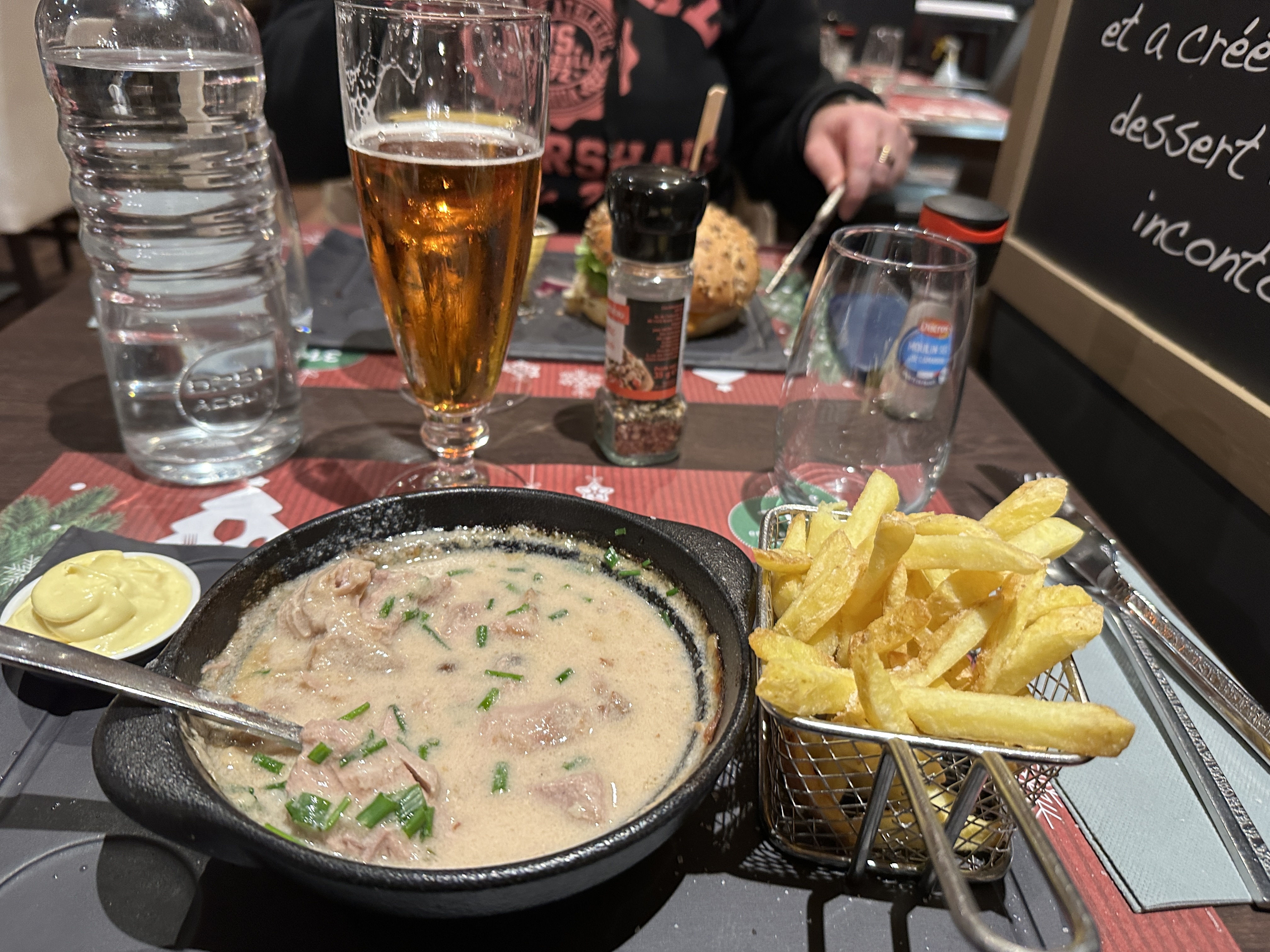 Dommage trop basique et même chère pour la qualité retrouvée dans l'assiette.( entrée salade +++ accompagné de 2 tranches de pain grillé tartinees de fromage blanc aromatisé au saumon et ciboulette ) Une blanquette de veau correcte mais baignant dans la crème. déçue Correct pour un repas sur le pouce sans plus.