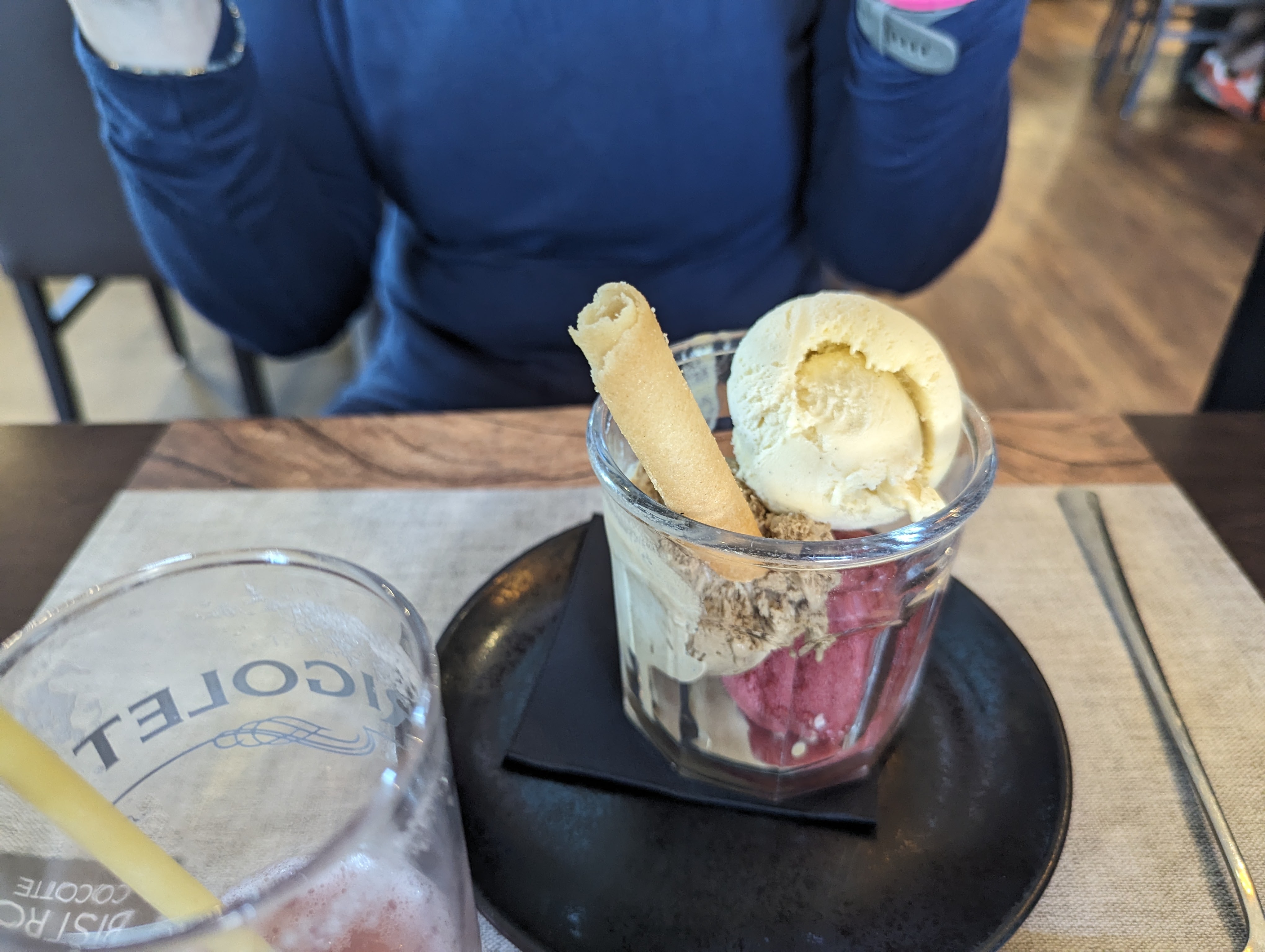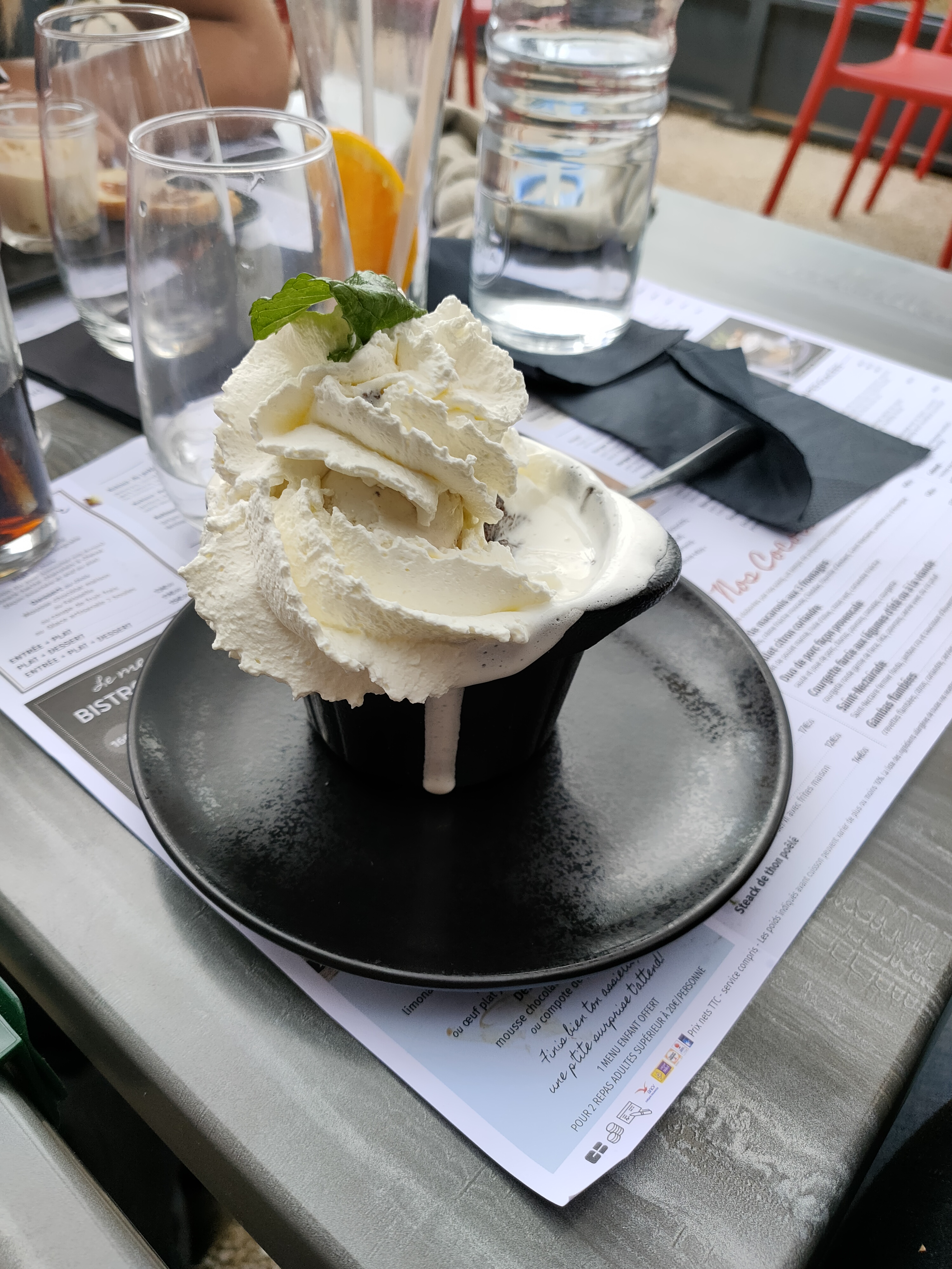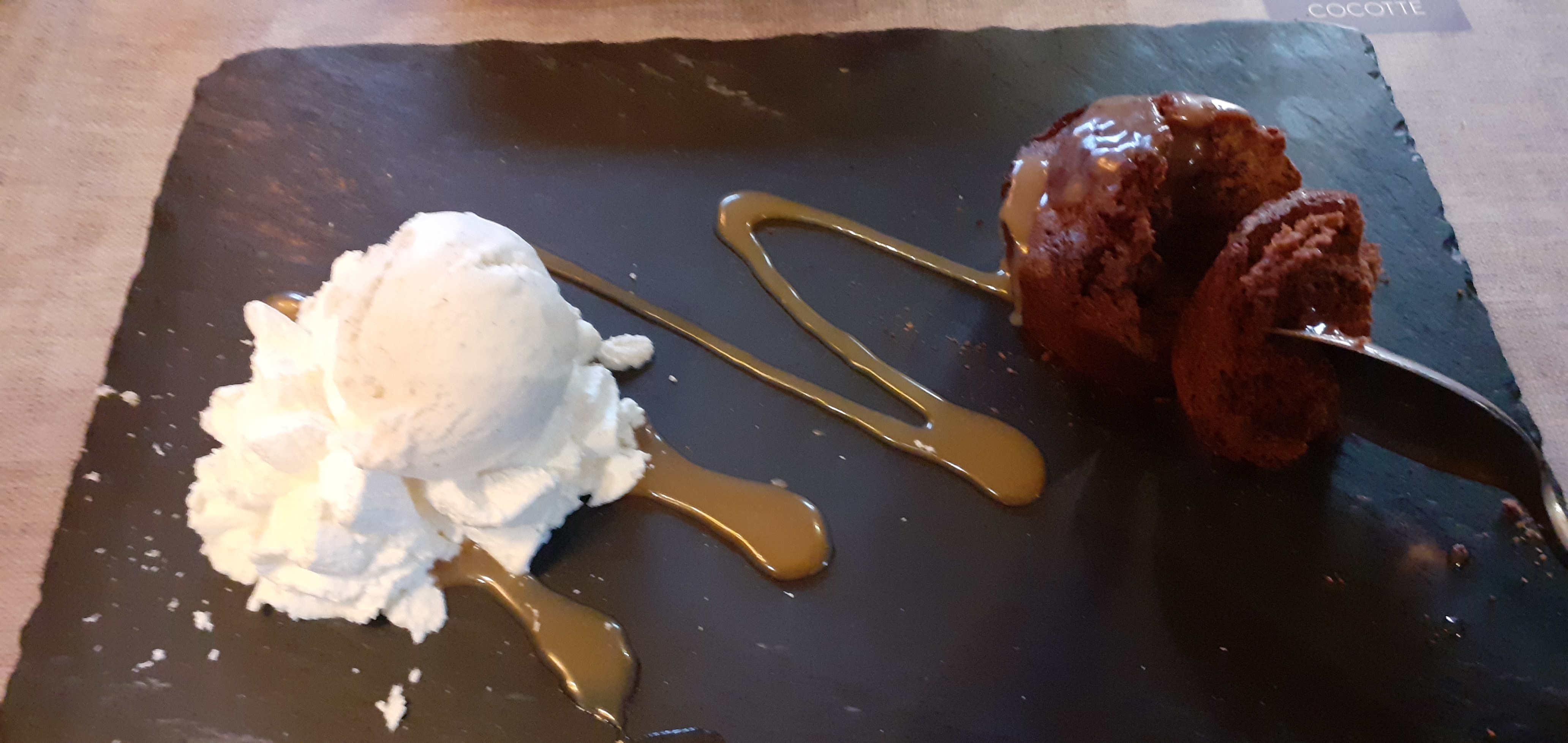 On se retrouve vite serré sur une petite table mais le personnel sait vite nous mettre à l'aise. Après un plat très bon mais light sur l'accompagnement tout c'est gâché avec le dessert. La personne en cuisine qui a préparé nos coupes de glace a confondu le chocolat avec la vanille sur la glace de madame ou c'est plus contraignant je fais de l'allergie aux produits à coques et dans le fond Il a inversé deux saveurs et à mis bounty. Donc direction la voiture pour prendre une injection d'epinephrine car un œdème de Quincke arrivé.