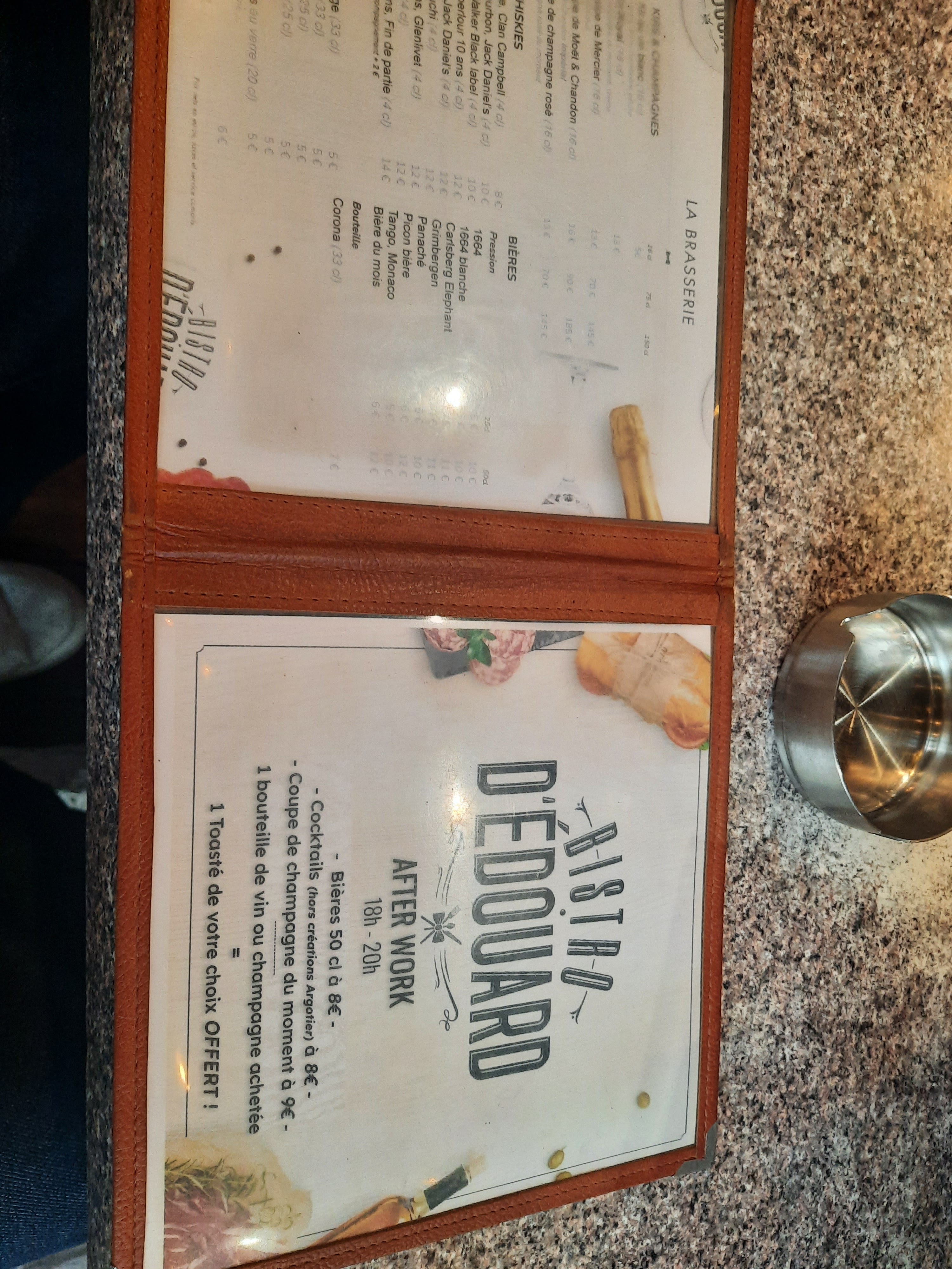 J'ai été avec l'entreprise pour un déjeuner d'équipe. Les kirs et autres cocktails sont immenses et supers bons! J'ai eu un poisson trop cuit mais très bon quand même. L'équipe quant à elle est au taquet et au top! Merci