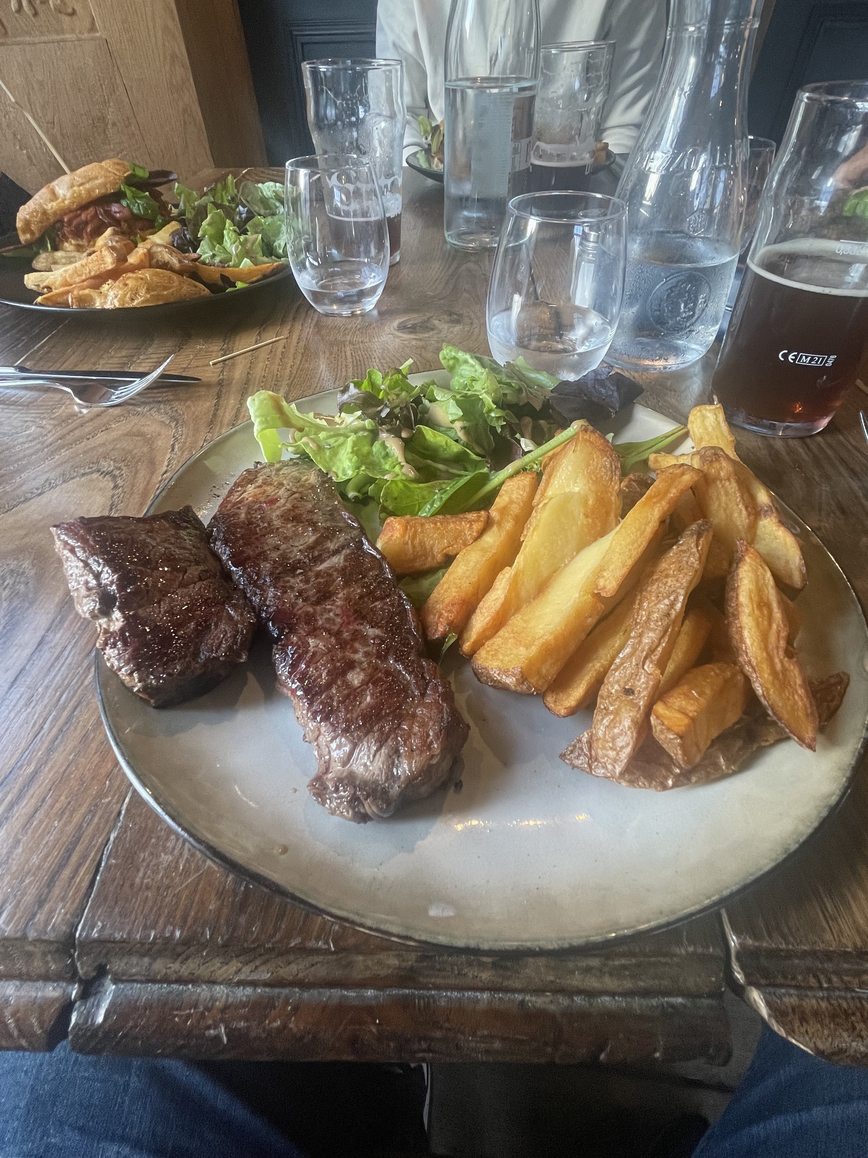 Apéros/plats/dessert en tête à tête, j'ai pris la pièce du boucher et madame les gnocchis maison, la viande était tendre à souhait, un vrai régal, les plats sont copieux, les desserts sont travaillés, le personnel est tres agréable, à l'écoute et disponible, vraiment super, je recommande