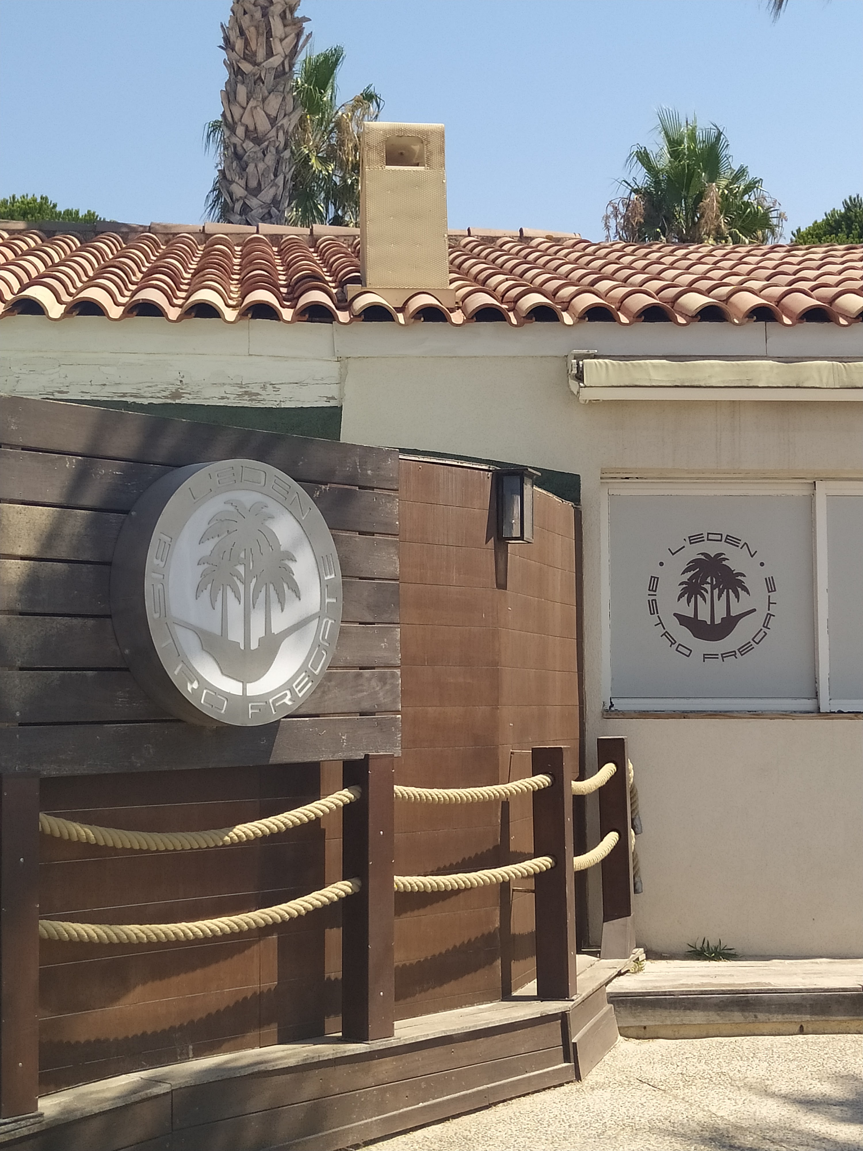 En plein front de mer à six fours les plages. Belle terrasse (même si je n'aime pas les chaises et tables hautes), dommage qu'elle soit séparée de la plage proprement dite. Plats corrects (tataki thon) mais sans plus (burger très moyen et frites moles). Service d'abord souriant mais toujours un peu distant (on est pas à St Trop les gars)
