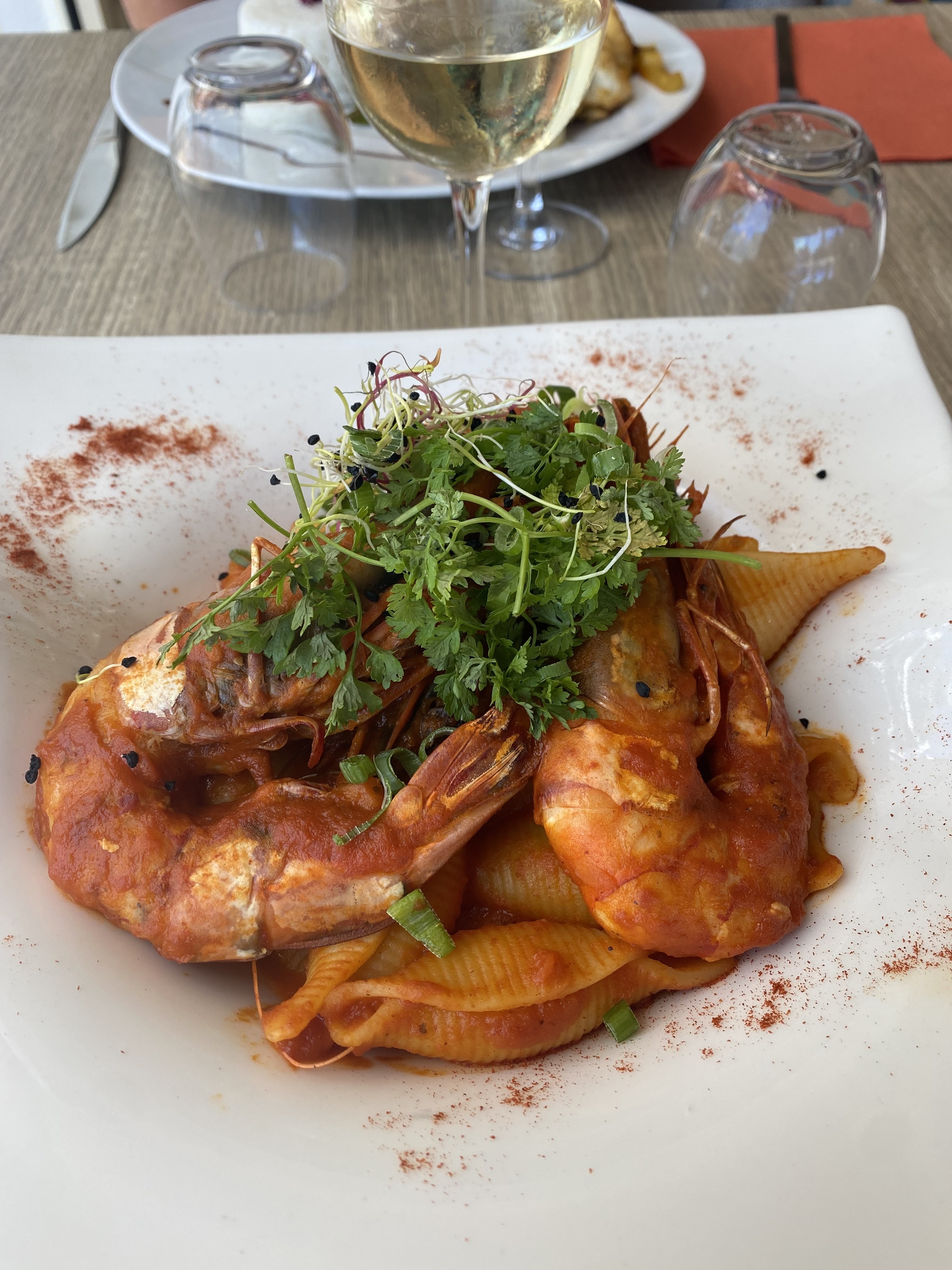 Excellente surprise pour un restau de bord de mer. Jai pris un plancha de la mer. Belle présentation, il y a du travail, cuissons du poulpe et du calamar maîtrisées, agrémenté de coquilles St Jacques et gambas. Suffisamment copieux. C'est beau et c'est bon ! Vue relaxante sur la plage, service agréable et sympathique. Un sans faute.