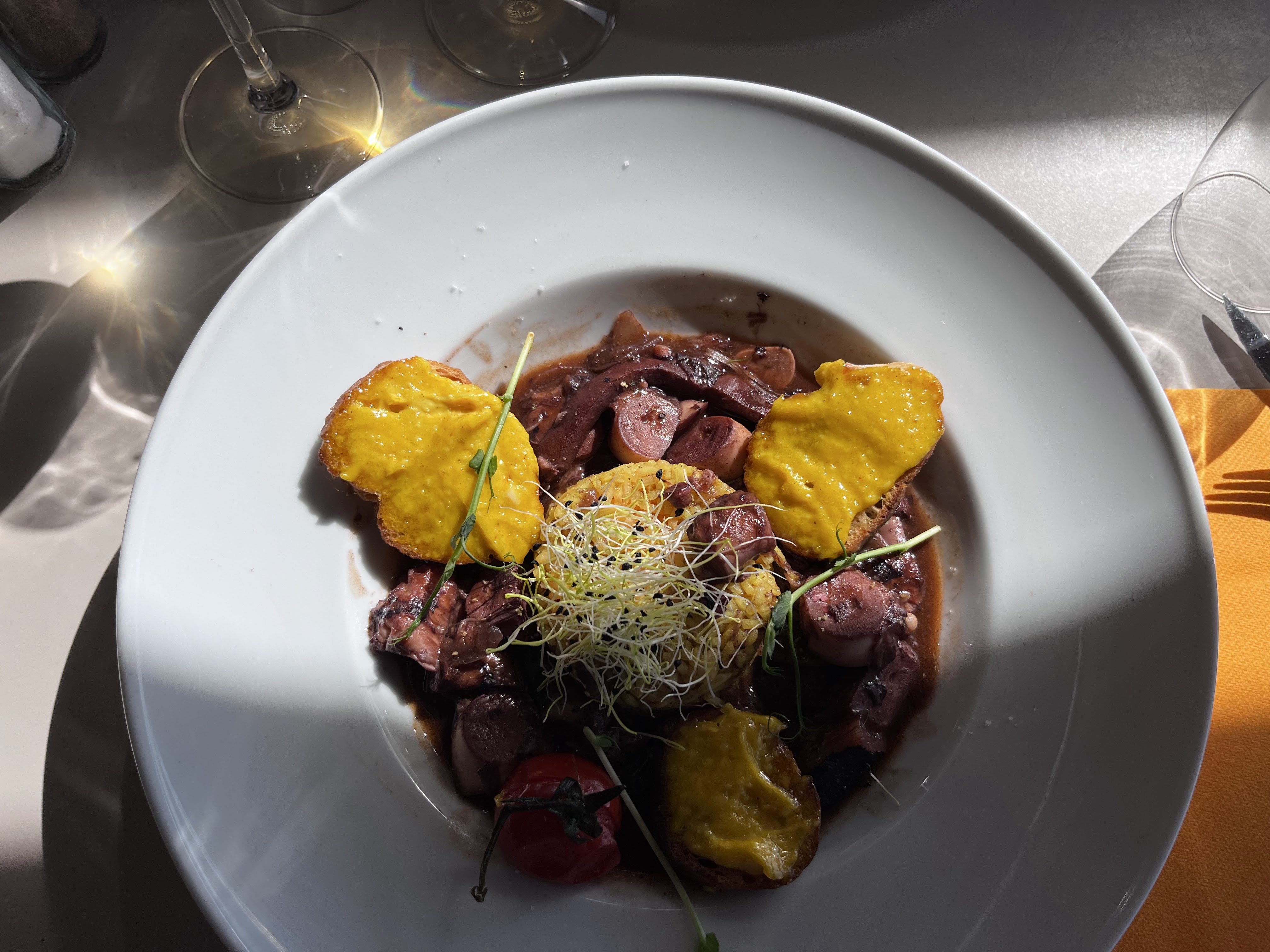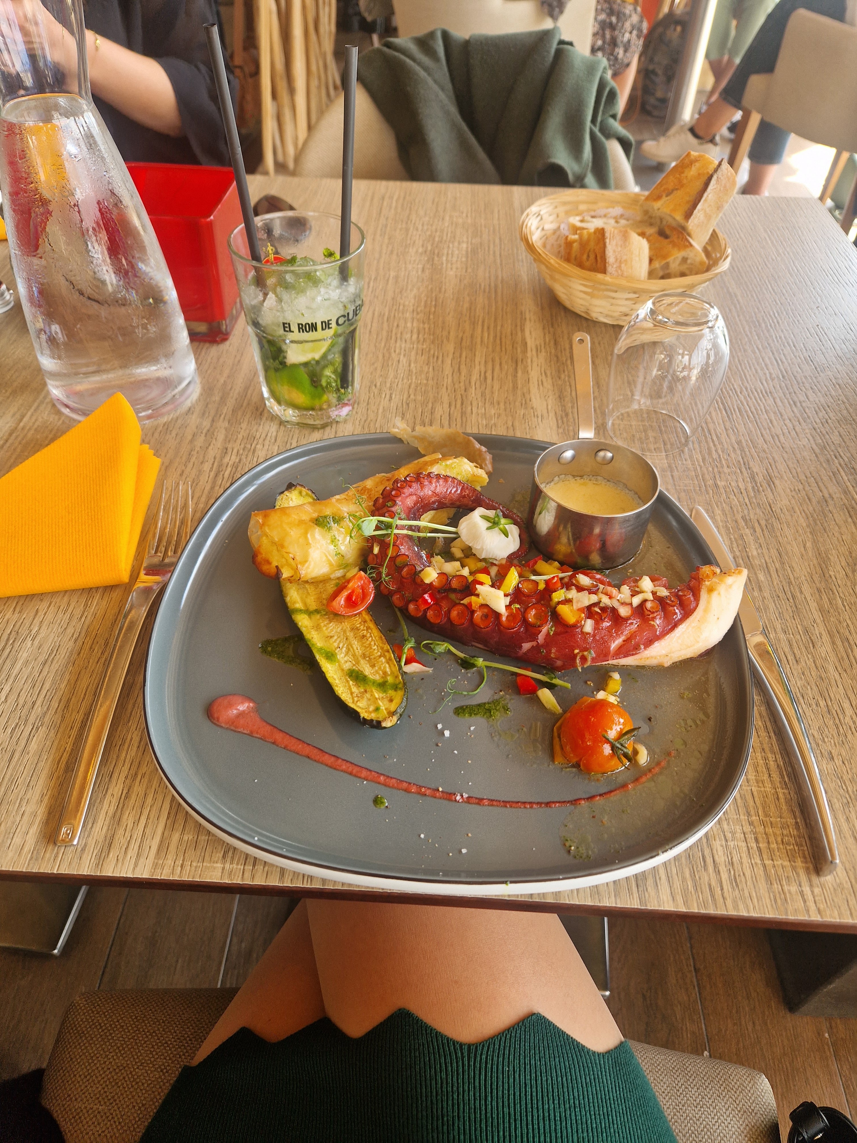 Le poulpe un peu fade et les desserts moyens Seul le tarif est à la hauteur