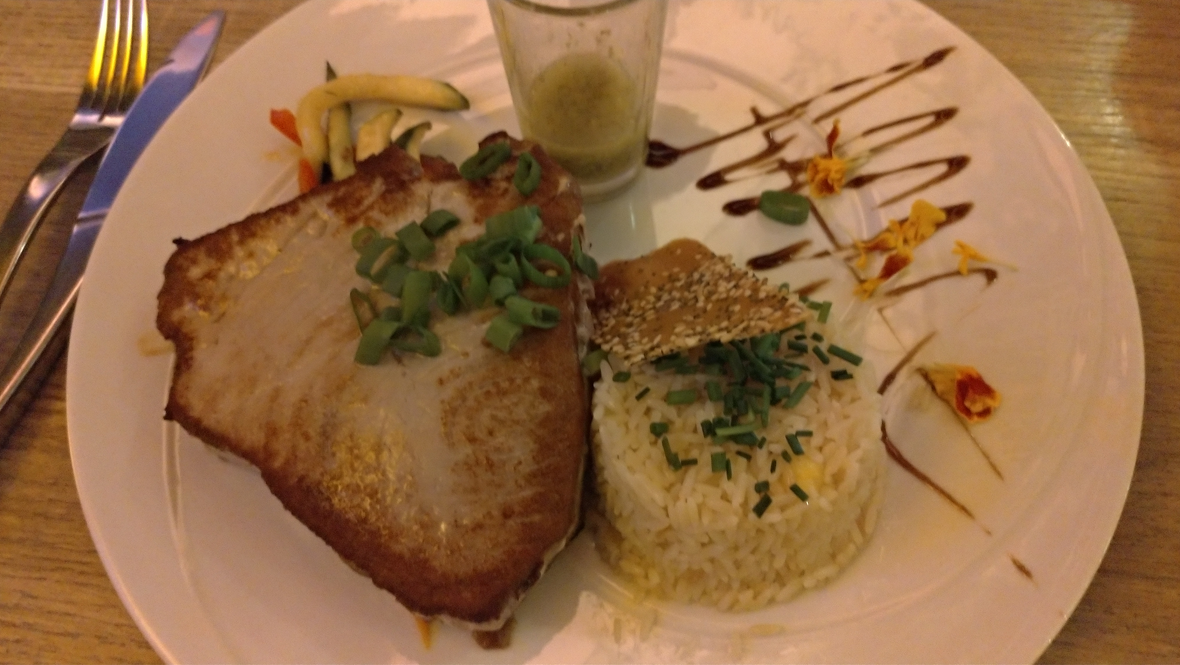 Bon repas. Thon mi cuit était légèrement trop cuit à mon goût mais toujours agréable.