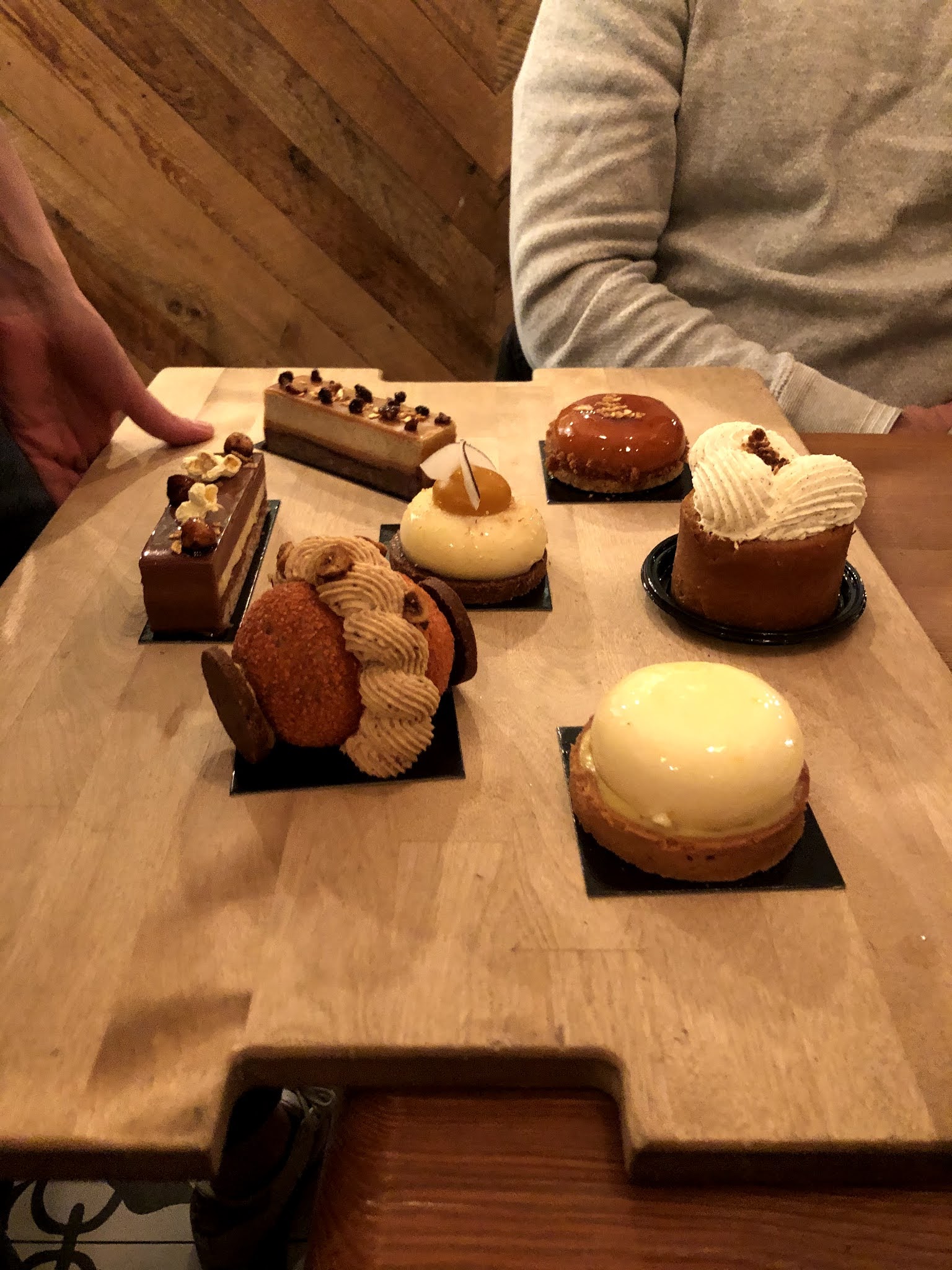 Plutôt une très bonne surprise. On y mange très correctement. Le plat de tête de veau était grilloté et c’était justement excellent : un gras qui fond en bouche avec une surface qui était croustillante. Franchement un très bon point et qui ravira ceux qui connaissent bien la tête de veau sauce gribiche que l’on peut déguster dans un bouchon lyonnais. Le plat à base de Paleron était de très bonne facture malgré une viande un peu dure sous la dent. L’accompagnement de petits légume accompagné de sa polenta était très bon et copieux tout comme le paleron. Et pour finir c’est le feu d’artifice concernant le dessert puisqu’ils sont de très haut niveau. N’hésitez pas à les admirer à travers la vitrine, vous pouvez les prendre en take away. Clairement le meilleur bistrot de la rue Montorgueil (tous les autres bistrots de la rue sont pour touristes qui sont perdus ; avec plats aseptisés des fournisseurs de la restauration collective : pas mauvais mais cher pour ce que c’est).