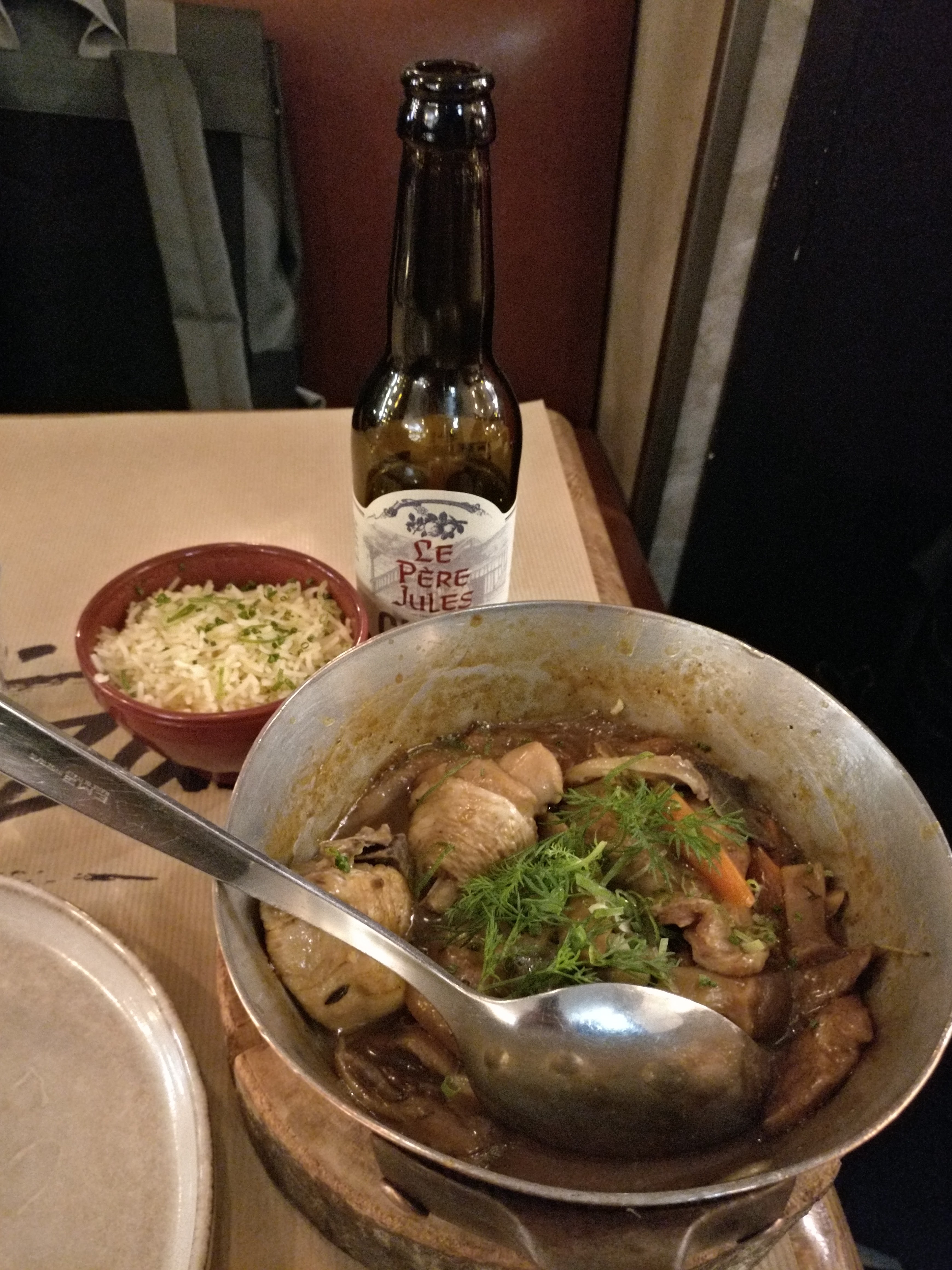 C'est une belle adresse au milieu de la rue Montorgueil. Le service est très sympa, le cadre est simple, l'ambiance est décontractée, l'assiette est jolie et surtout, c'est bon. La viande accompagnée de la béarnaise maison est top, le Paris Brest avec son inclusion de pralin est à tomber. On est à 55€ par personnes pour apéritif/plat/dessert/vin/café. Très bon rapport qualité-prix.