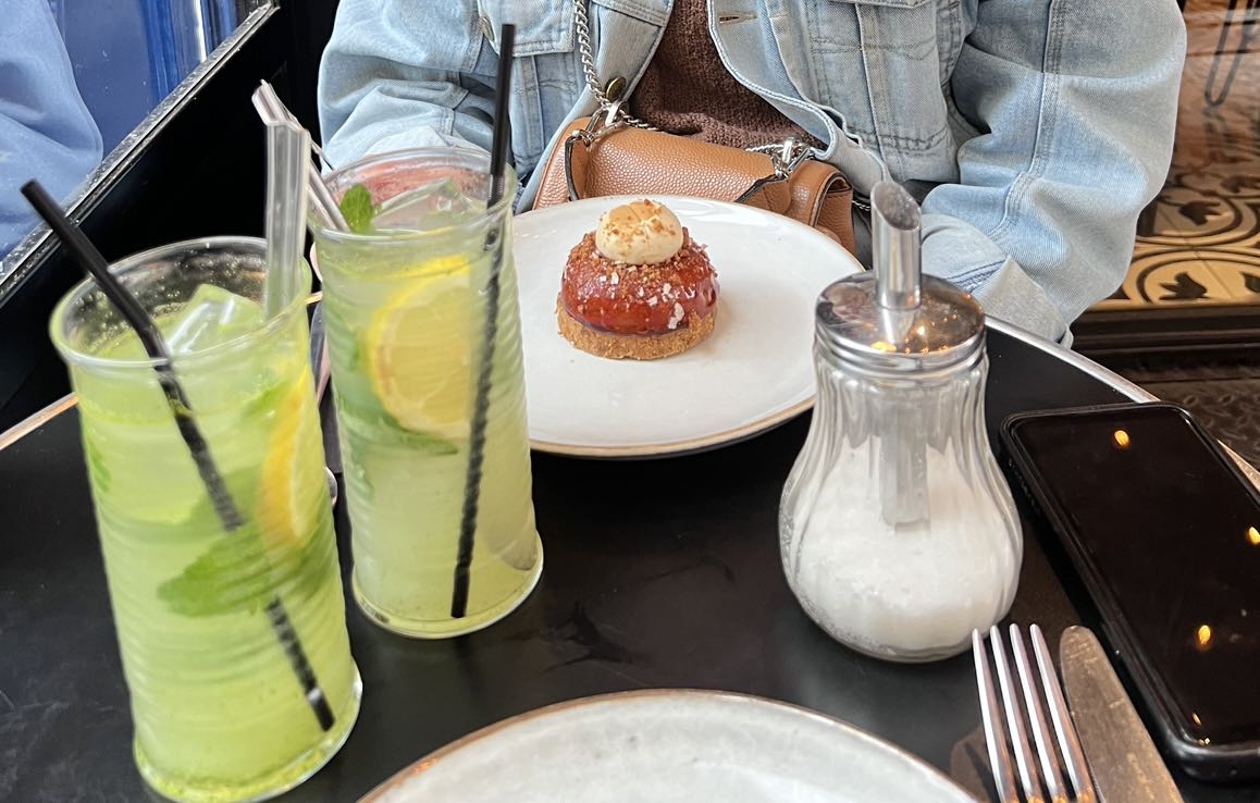 Brunch à volonté pour 39€ sans alcool avec un jus d’orange, une boisson chaude, un plat chaud, un buffet d’entrée et de dessert. Honnêtement pour ce prix et le quartier c’est pas cher. Cependant, pour le jus d’orange chacun n’a eu qu’un petit verre de cantine, on pourrait faire petit effort pour les boissons chaudes… Après la qualité de la nourriture est ok mais il n’y a pas beaucoup de diversité comme vous pouvez le voir sur les photos… Dernier point, les serveurs ne sont pas très souriants et accueillants mais corrects. C’est une adresse que j’avais envie de faire depuis longtemps grâce aux influenceurs et vidéos sur les réseaux mais finalement il y a vraiment meilleur autre part comme la concurrence à Paris est assez forte !