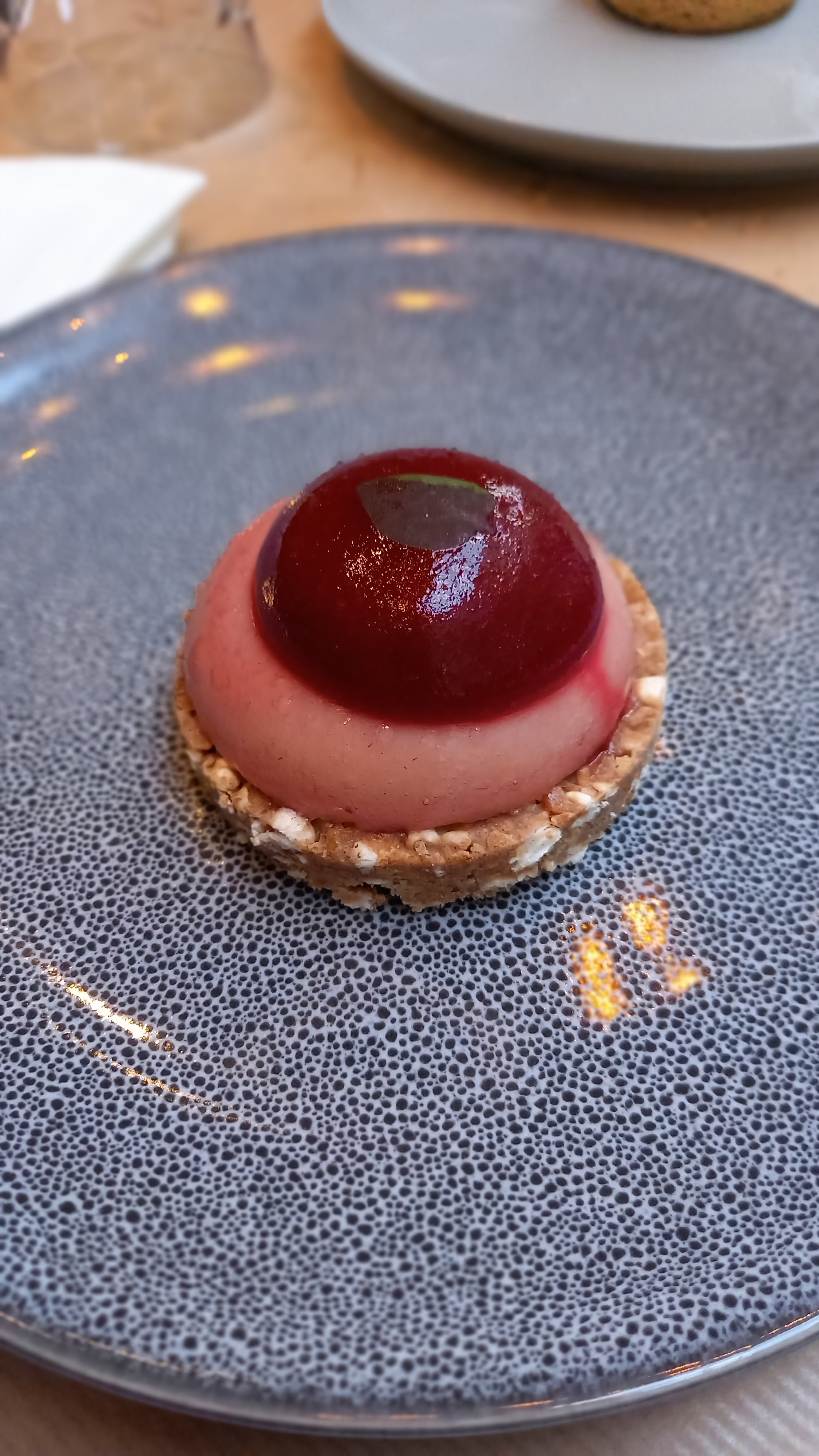 Excellent et original baba, qui n'a rien à envier à ses nombreux concurrents directs, quoiqu'un peu de rhum supplémentaire le rendrait encore meilleur. La pavlova myrtilles / sésame est également de bonne facture, sans être exceptionnelle. De la belle ouvrage !