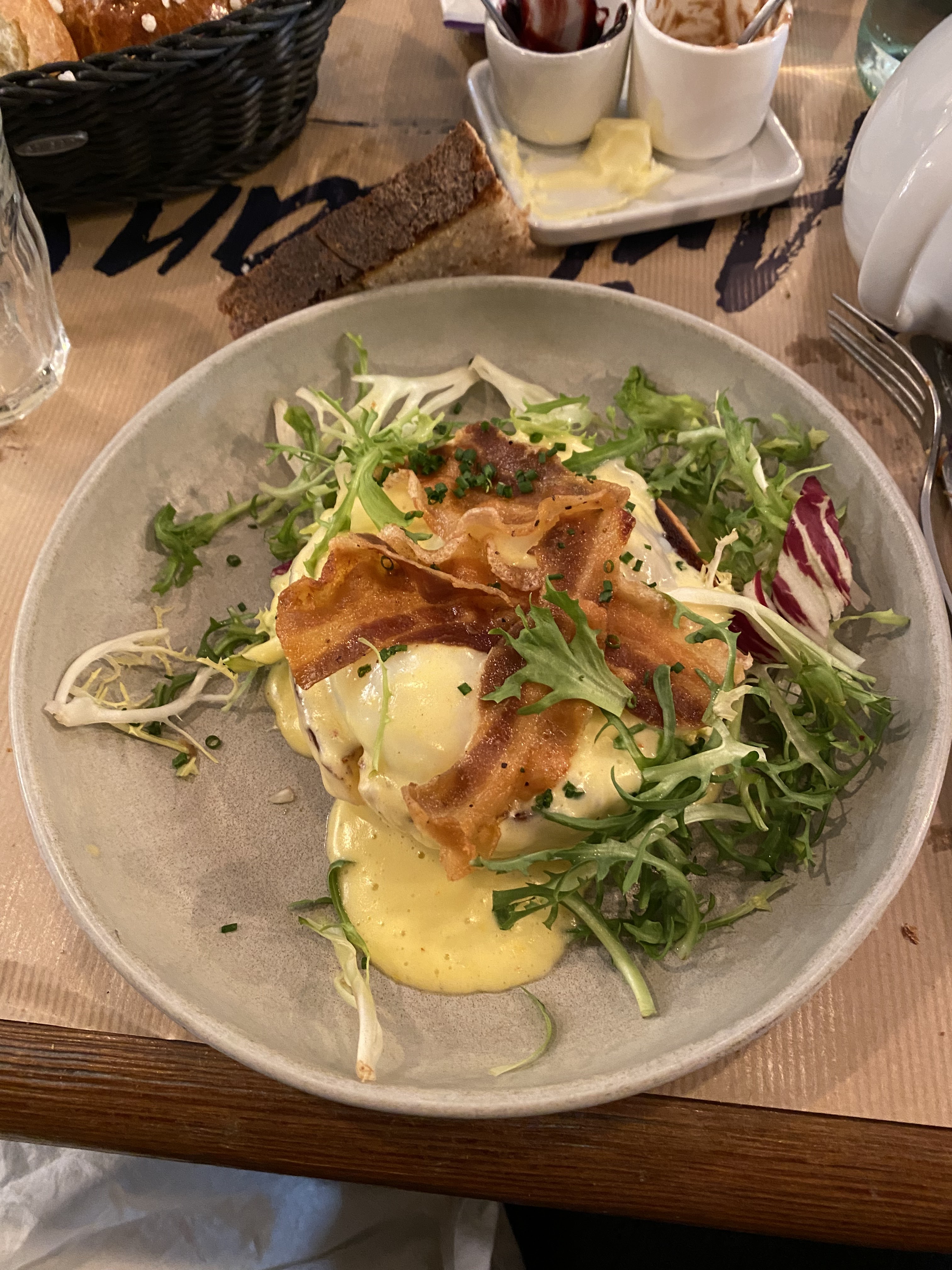 J'ai mangé des meilleurs oeufs bénédicte ailleurs. Ceux ci étaient assez neutre. Je trouve dommage qu'après avoir consommé 6 brunchs, 2 bouteilles de vin, on nous explique que les café allongés ne peuvent pas être transformé en expresso parce que c'est un brunch. Le bruit de la machine à café est très bruyant. Par contre le buffet de desserts est parfait.