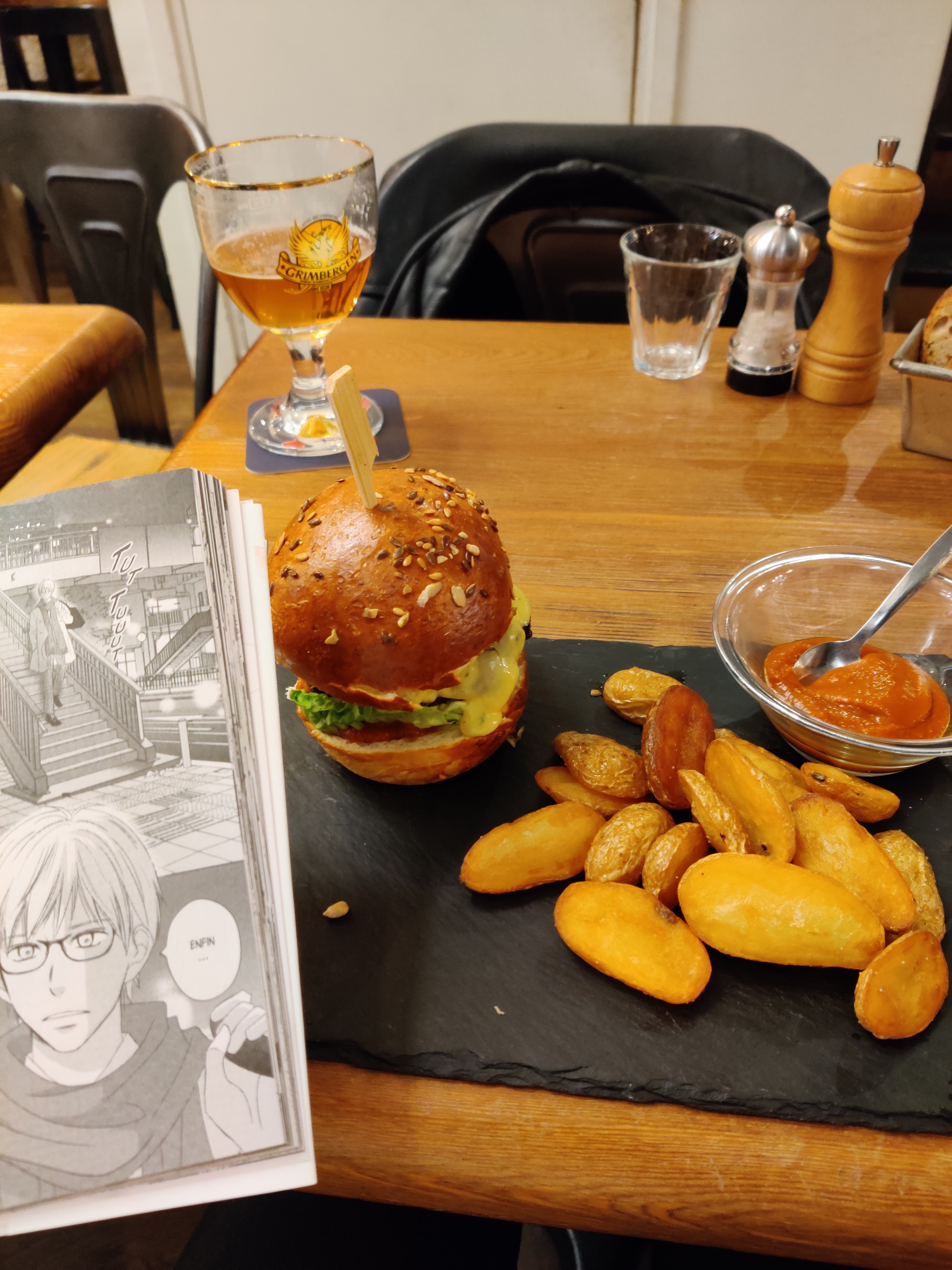 Le cadre est super sympa et les plats bons et une mention pour l’entrée au saumon: un délice et le pain frais chaud. J’ai passé un agréable moment au sein de l’établissement, malheureusement je retire une étoile pour le service car même si la serveuse est disponible: me suis sentie la déranger parfois avec son stress communicatif 😀.