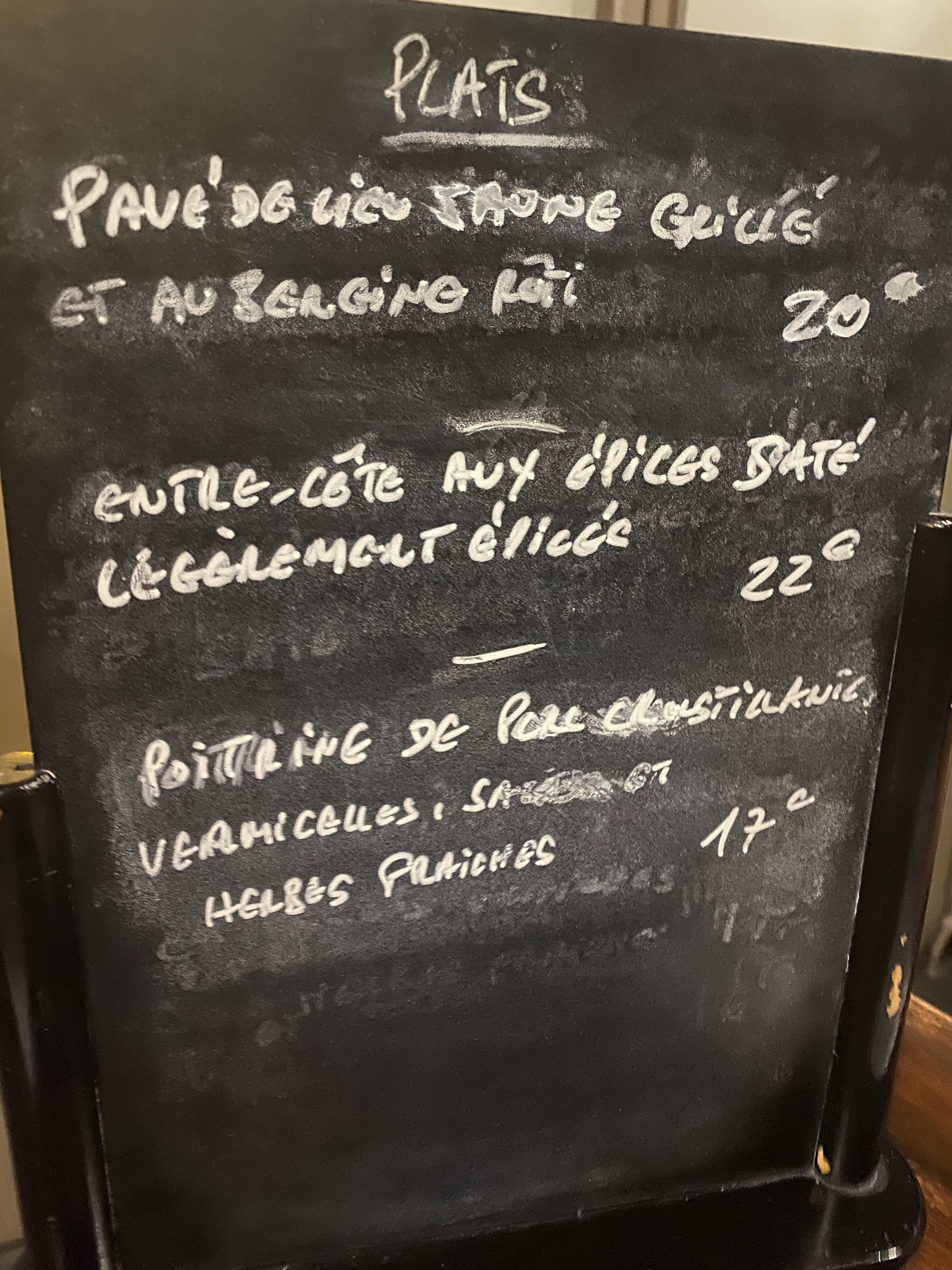 Une formule midi impeccable avec 3 entrées / 4 plats / 4 desserts Le soir, c'est plus cosy et la carte s'enrichie de nombreux plats. Je recommande
