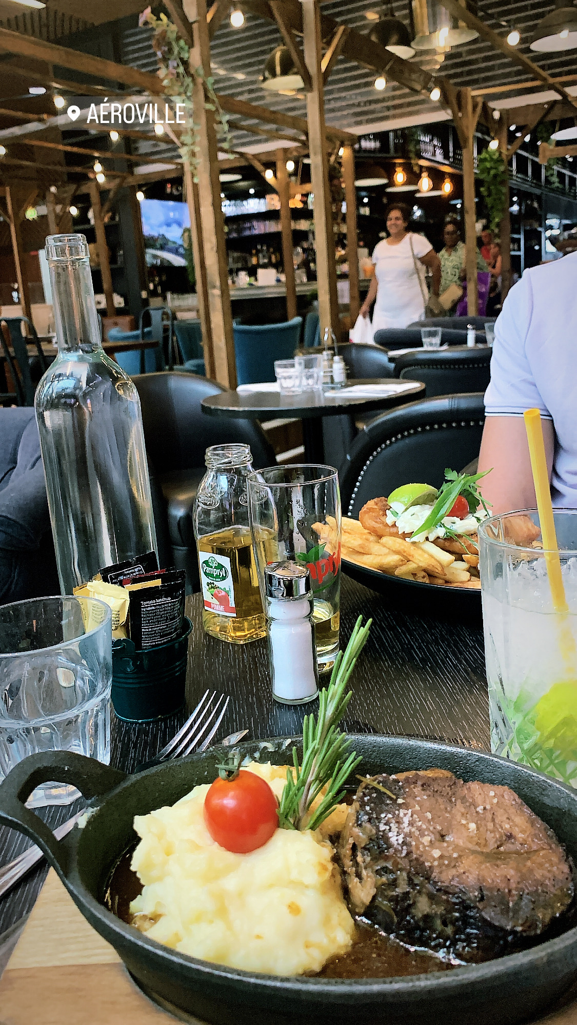 Situé dans la partie restauration du centre commercial Aéroville ce restaurant de style brasserie propose une belle petite carte variée. Service rapide, efficace et très sympathique. Nous ne regrettons pas cette pause agréable durant nos achats.