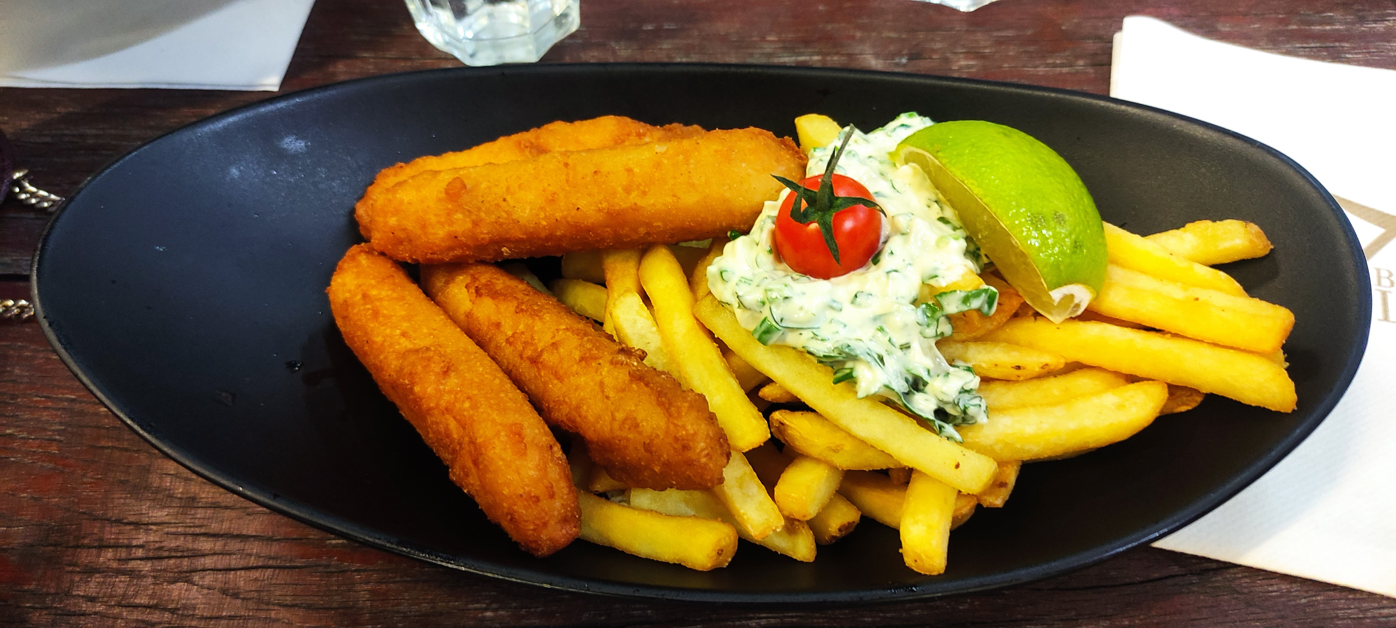 Restaurant convivial avec Un excellent accueil. Les serveurs sont accueillants, sympathique, avenants, disponible. Même un samedi, jour de grande influence. Très professionnel ! Un grand merci pour cela. Seul petit bémol (mais d'un point de vue personnel) j'avais pris les fish and chips (cf photo) le plat était très bon, mais dommage que la sauce tartare était sur les frites. N'aimant pas quand les frites ont trop de sauce, peut être revoir le dressage du plat. Mais sinon c'était très bon. Je recommande, même un samedi !