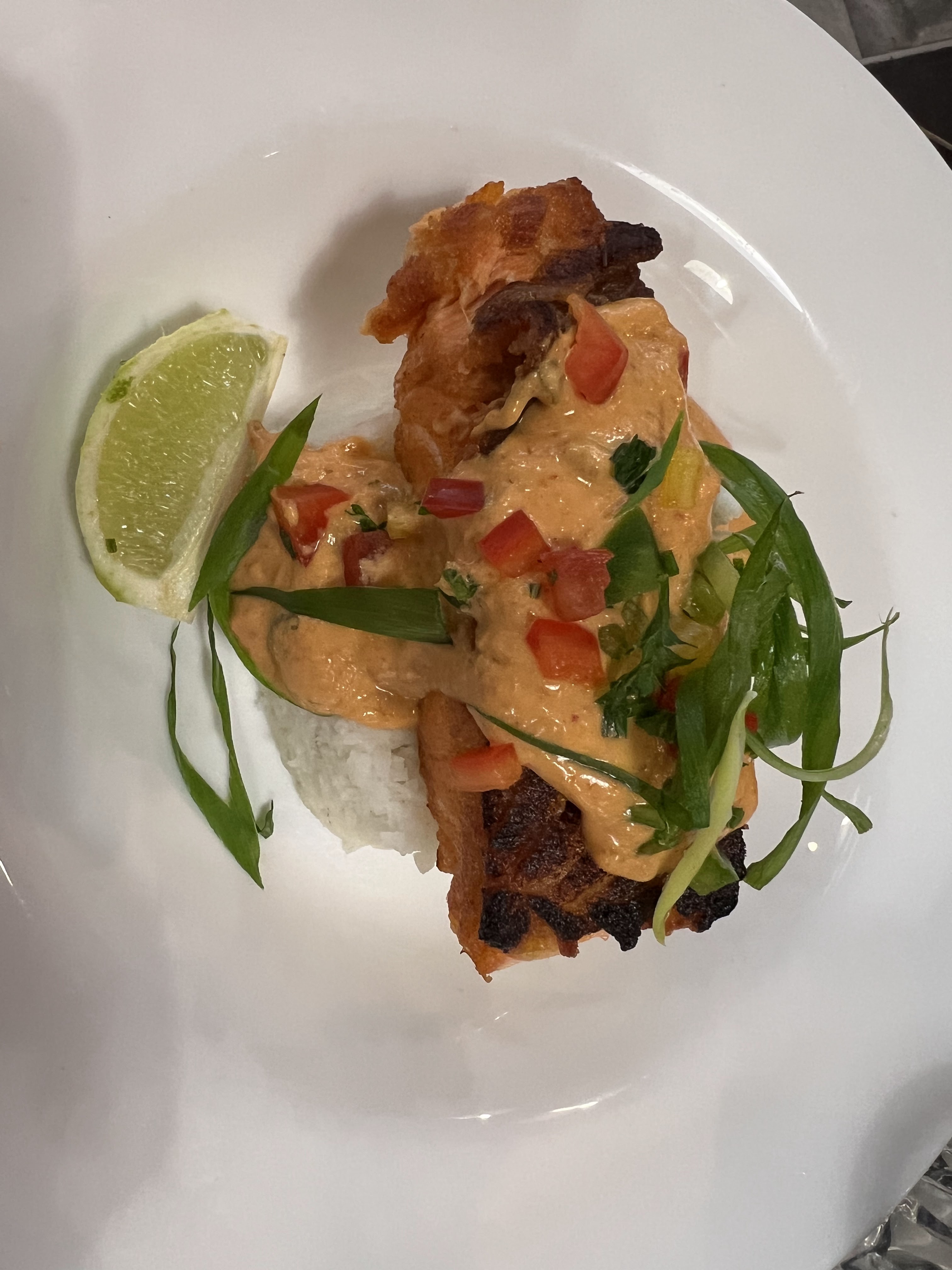 Plus beau en apparence que dans l’assiette. Pour l’entrée nous avons commandé des chips de patates douces accompagnées de guacamole. Les chips avaient prit l’air comme un vieux paquet de chips , le guacamole n’était pas frais, pour le plat pates trop cuite et avait un gout d’eau… la sauce et le saumon n’avaient aucun gout et le prix est excessif!! FUYEZ LE MACDO A COTÉ EST MEILLEUR !!!!!