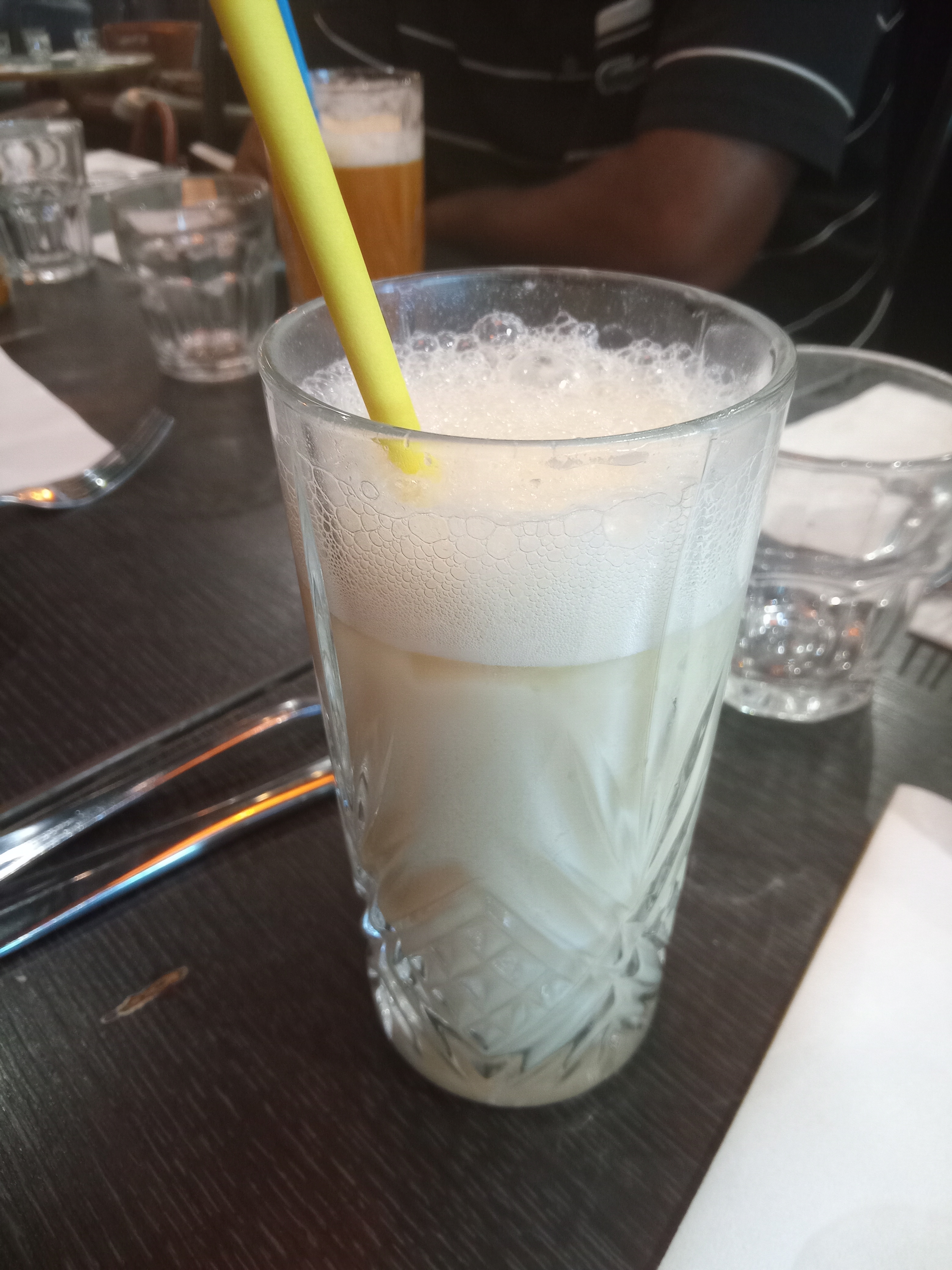 Bon accueil Bon service malgré un soucis sur l'arrivée de notre commande qui a tardé. Le plat de pâtes était très bon, servi dans une grande assiette creuse, et le poulet très bon également. Mon deuxième mojito fraise était bien chargé😂😂🤤🤭