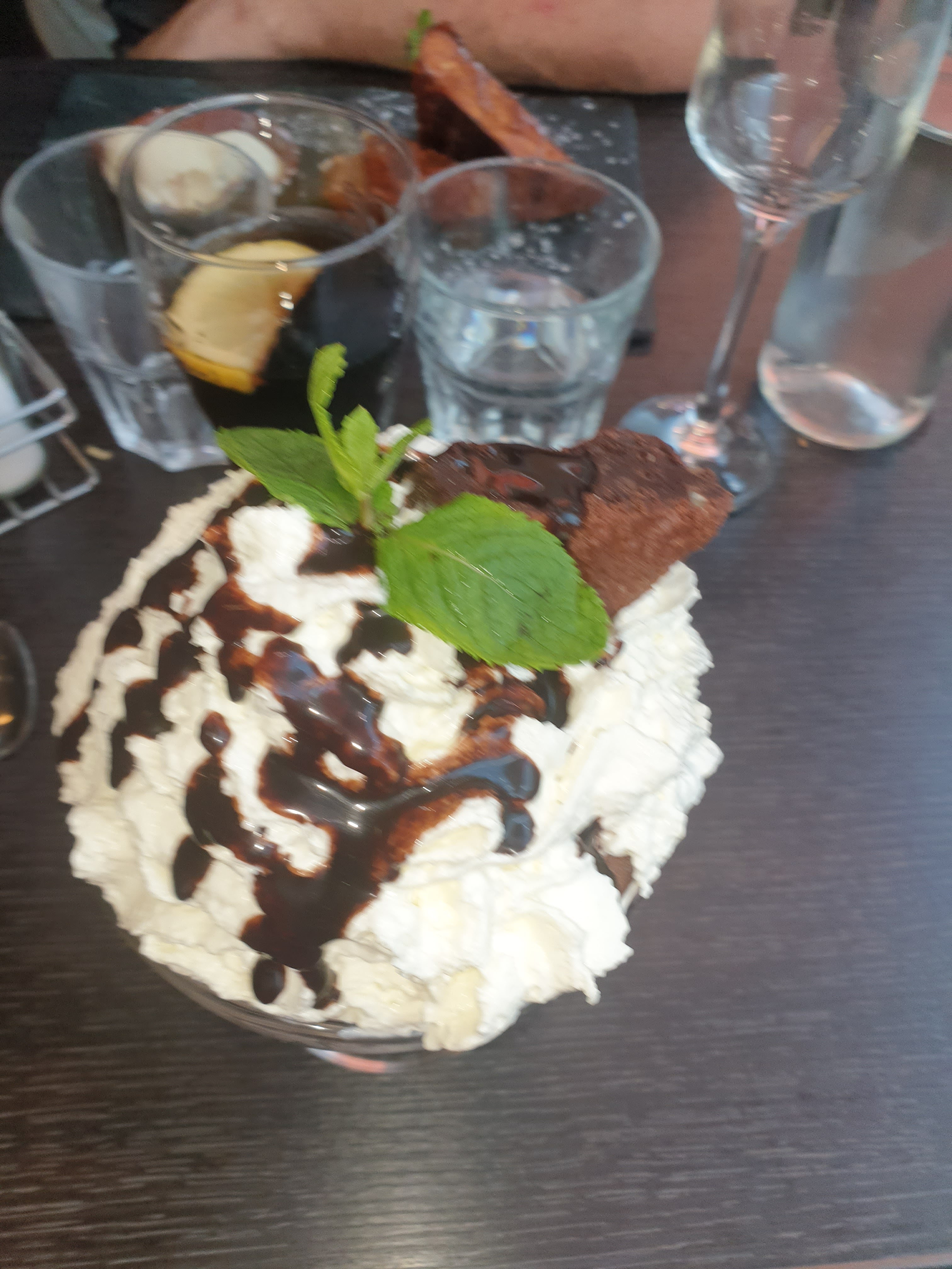 Trop expéditif !! 30 mn chrono ! A peine le temps de boire une gorgée de l'apéro que les plats arrivaient. Le serveur a débarassé dans la foulée pour nous apporter le dessert. Moment de détente 0.