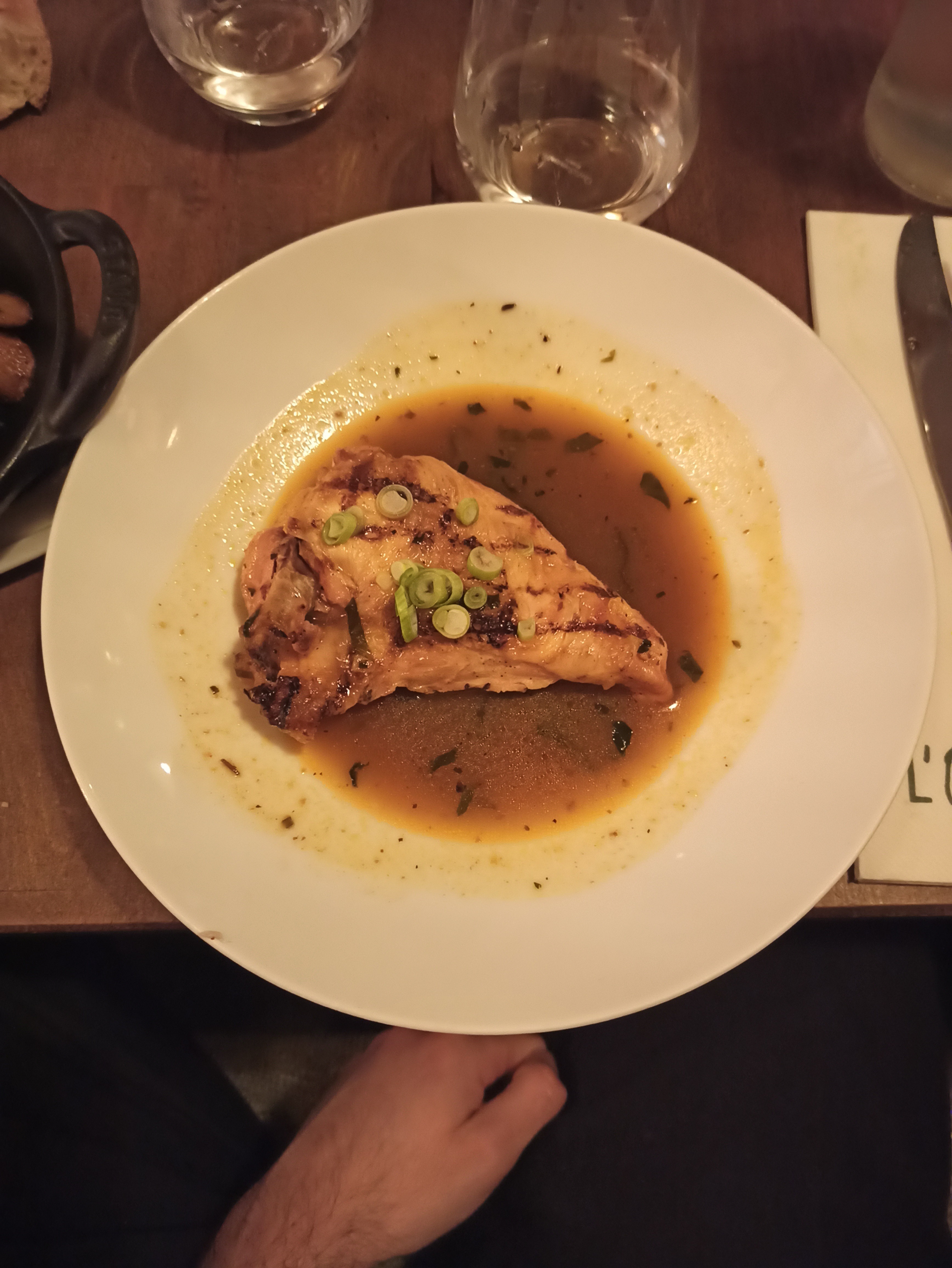 Remarquable nouveau restaurant. Suprême de volaille parfaitement cuit servi dans un bouillon savoureux avec des pommes grenailles délicieuses. Prix corrects. Excellent chef. Serveuse très sympathique. Nous reviendrons.