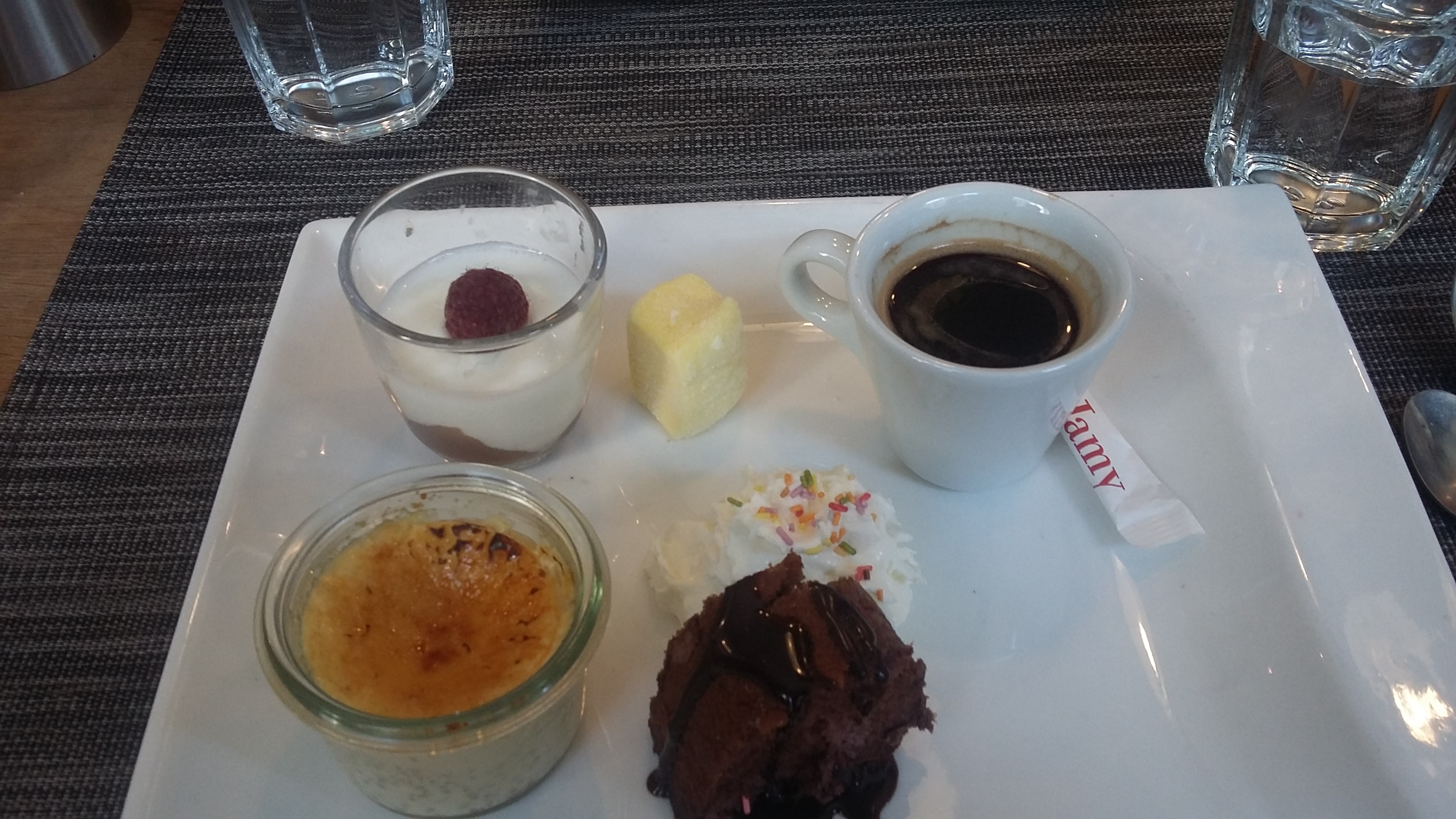 Passable. Cher pour la teneur des plats, salade bonne mais avec peu de saveurs... Dessert quelques rondelles d'ananas à 7 euros ( à ce prix je m'attends à avoir presque un demi ananas) Serveur peu aimable. Manque de place. Terrasse refuse pour réservation (nous n'avions pas réservé et les tables vides ne furent pas remplies)
