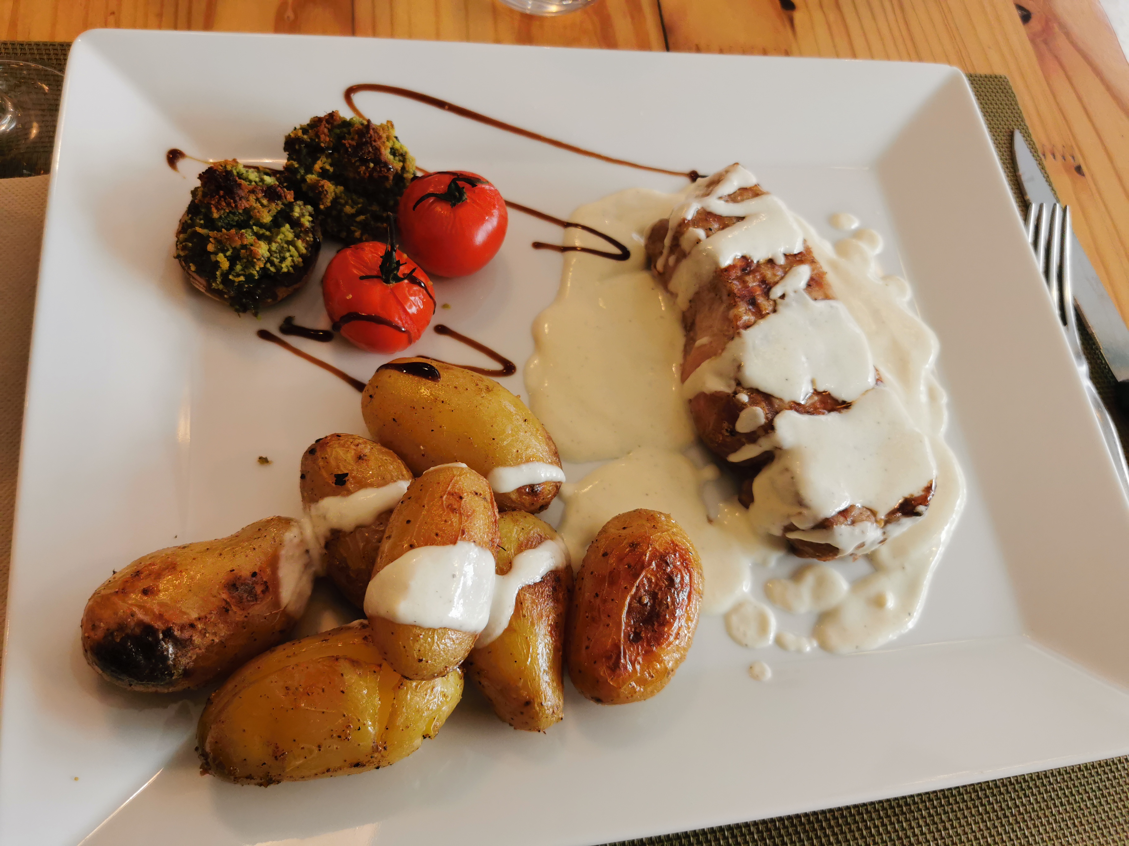 Plats très copieux, desserts au top et également copieux. En résumé très bon rapport qualité/ prix. Personnel très sympathique. Cependant une partie de la terrasse est trop près de la rue qui n'est pas piétonne. Mais je conseille vivement ce resto.