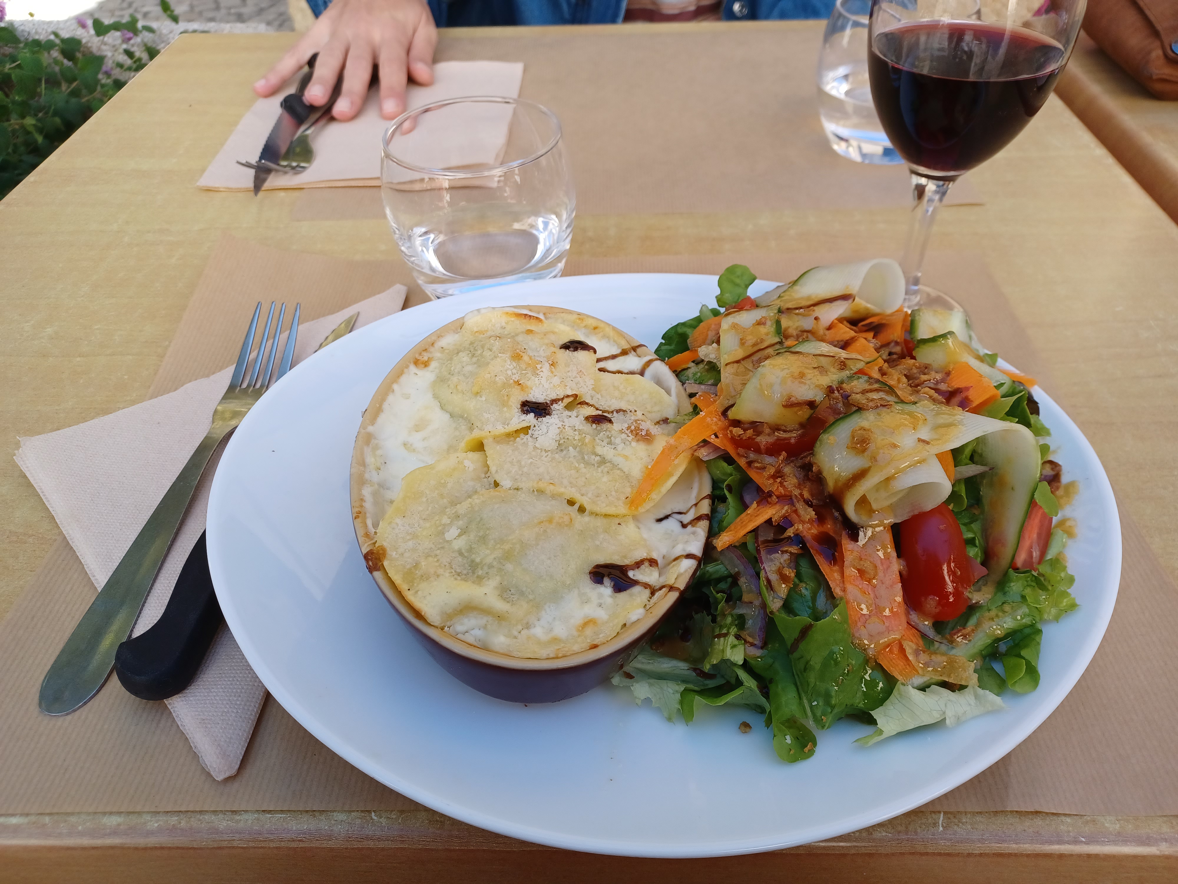 Le meilleur accueil à Tarascon, un petit Rosé de compétition et des lasagnes végétariennes quine font guère regretter la viande. Le compte est bon, tout est là.