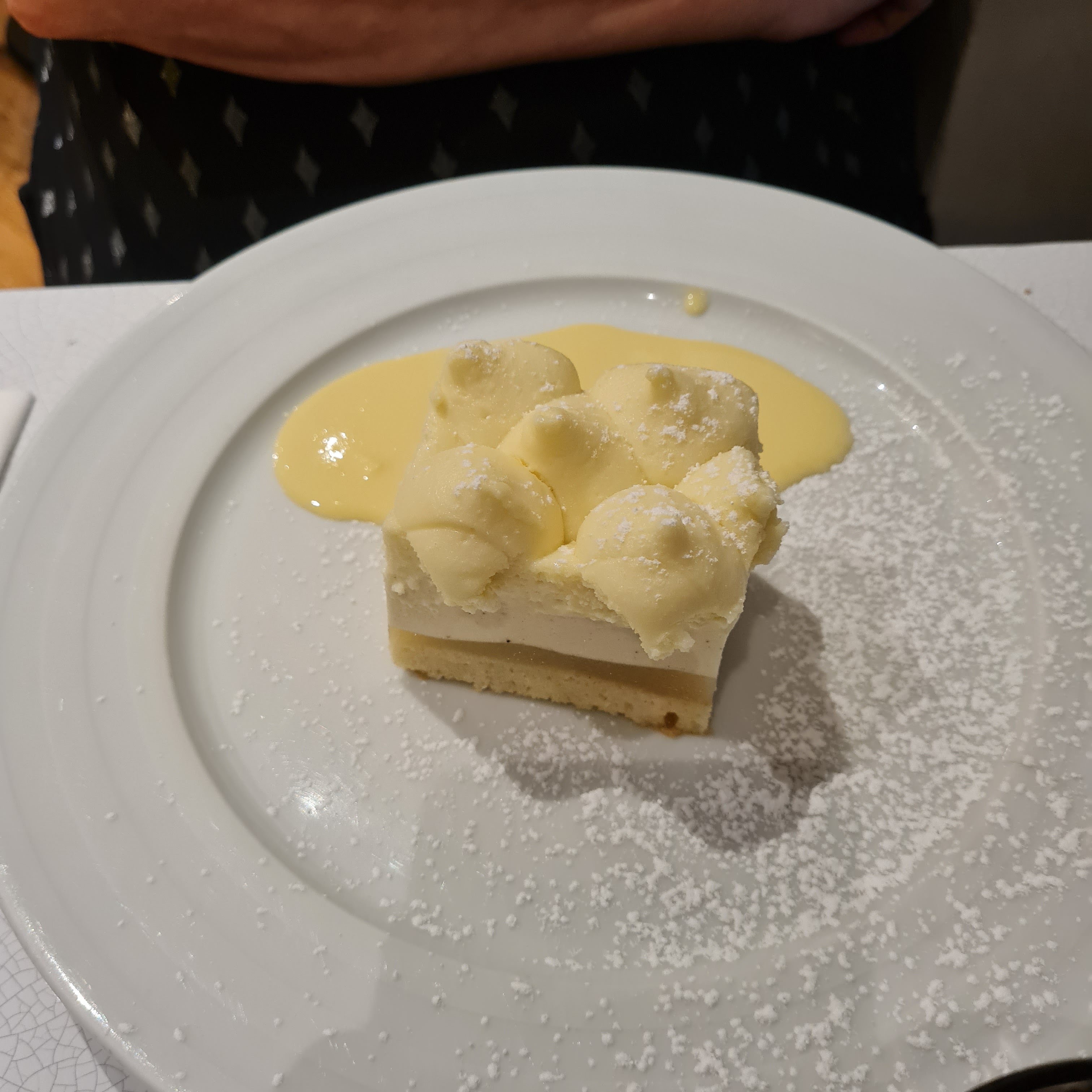Tiramisu à la lotte et crevettes pas terrible, trop lourde pour une entrée, trop salé et légèrement écoeurante. Par contre mon plat et mon dessert rien à dire. Selle d'agneau rôti & Hachis Parmentier savoureux. Coulant au chocolat particulièrement bon ! Très bon service, rapide, efficace et personnel gentils.