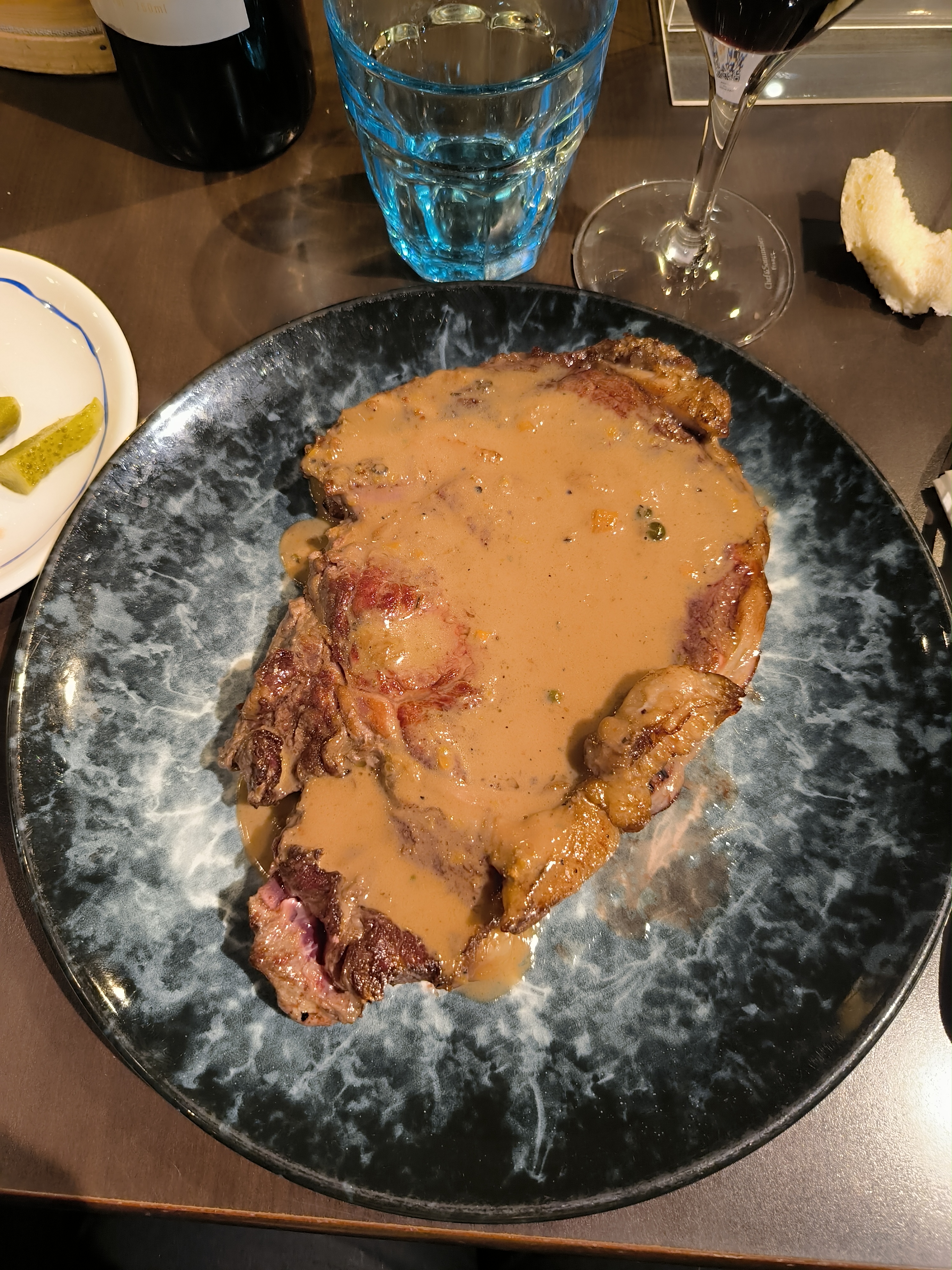 Top , nous avons bien dîné, repas copieux, belle table , entrecôte Angus juteuse, et le filet de bar également était fondant. Je le recommande fortement